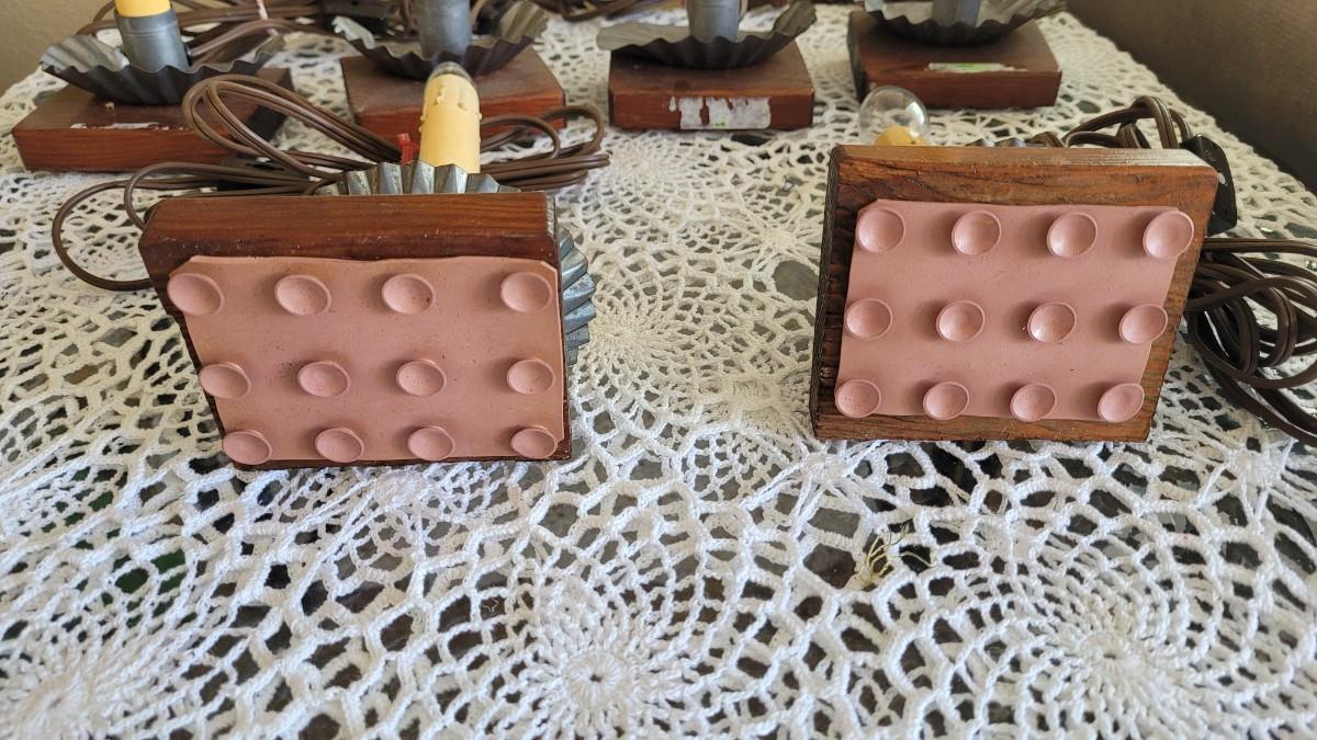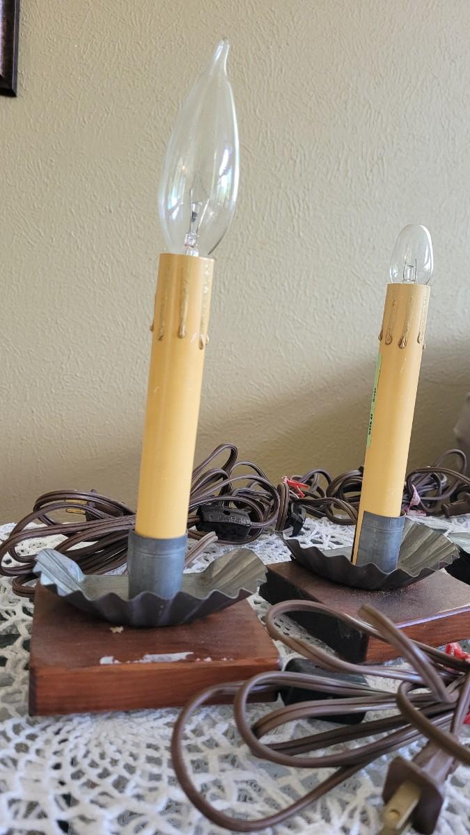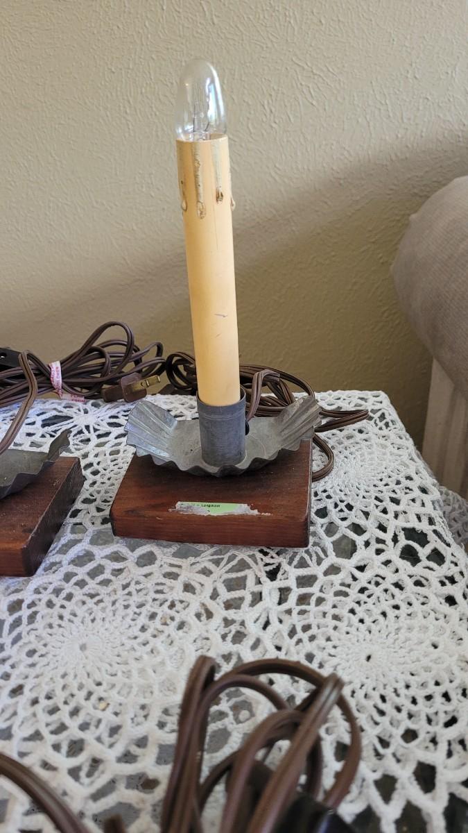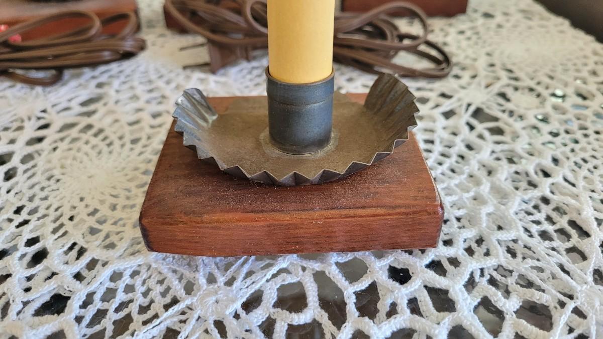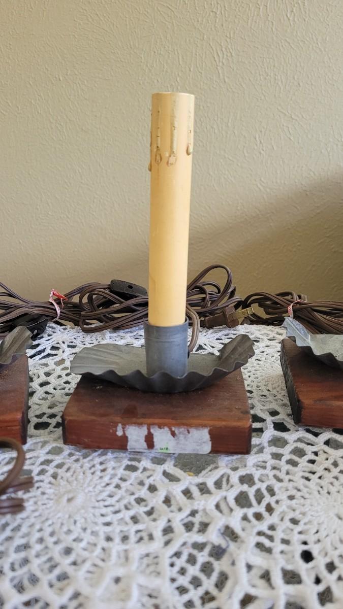 Lot 243: (6) Holiday Candles with Wood and Tin Bases