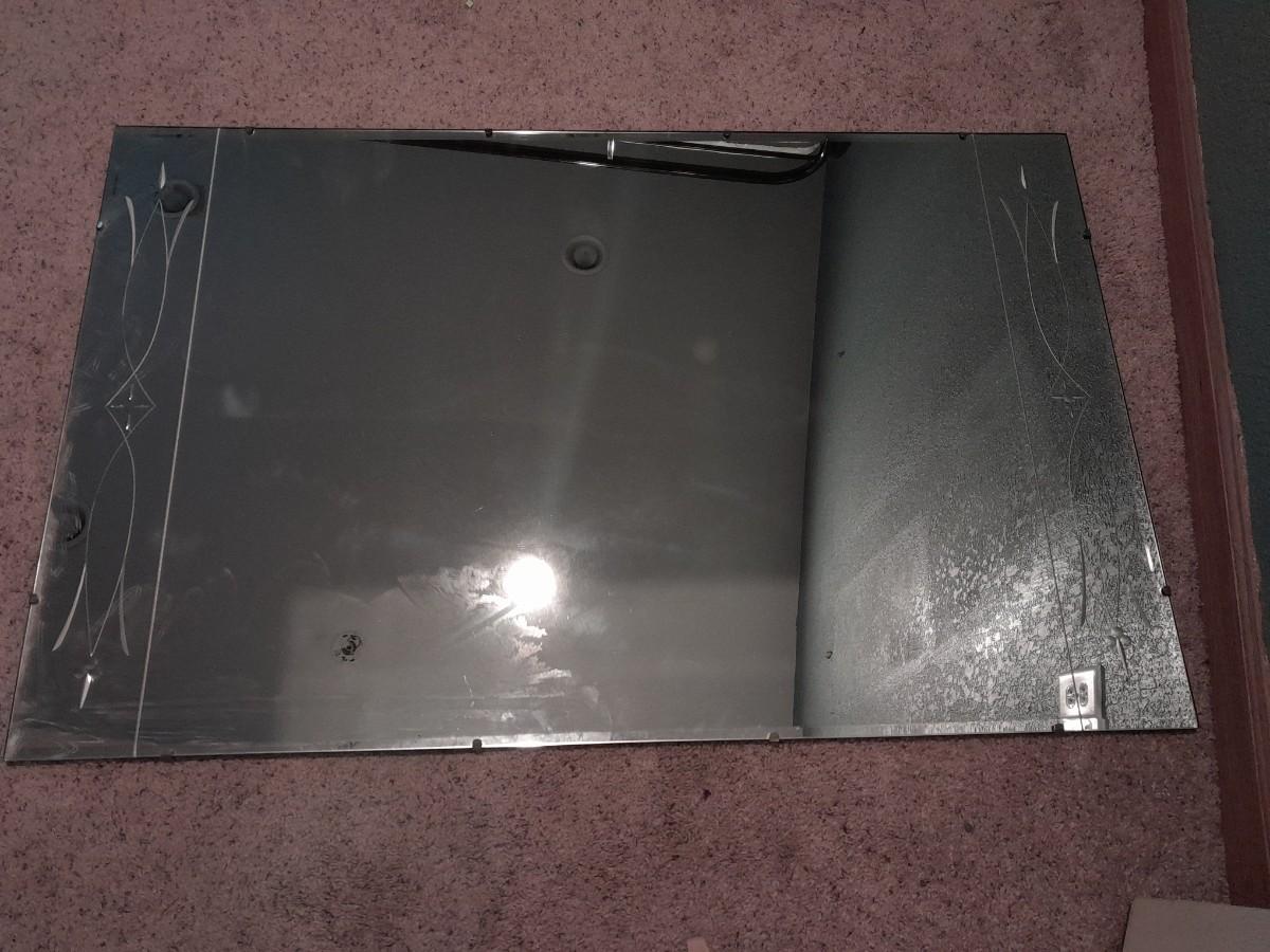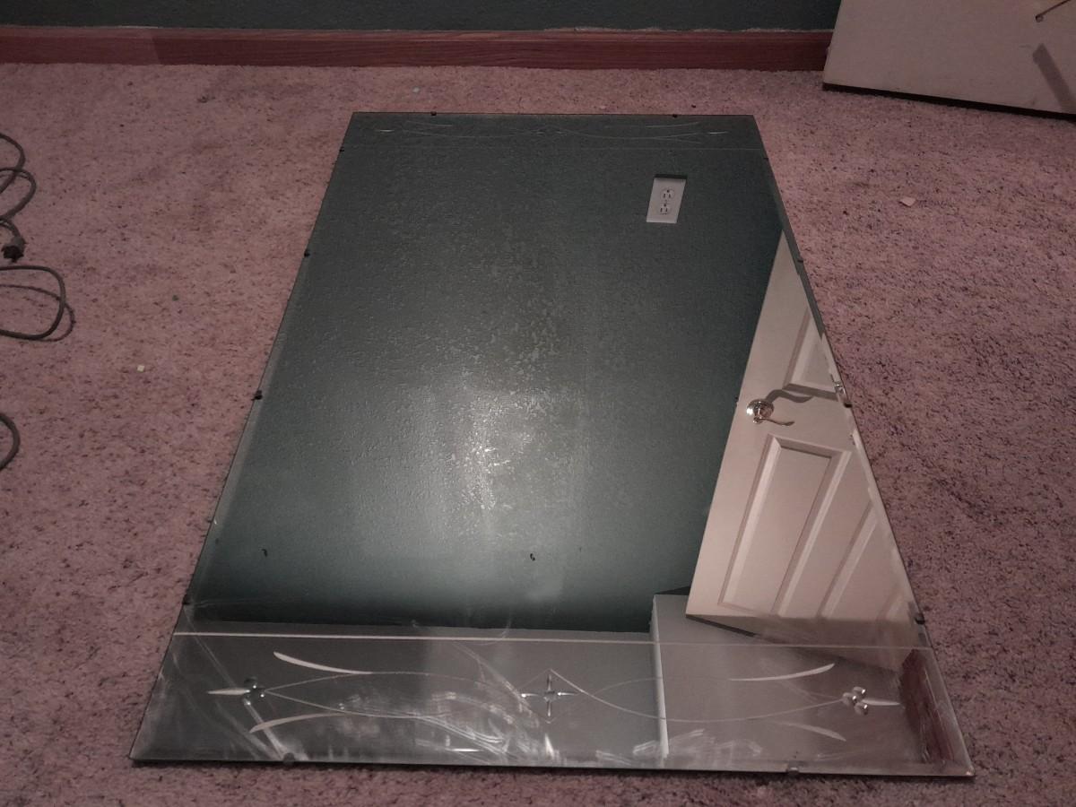 LOT 243 ANTIQUE DECORATIVE CUT BEVELED WALL MIRROR (HD)