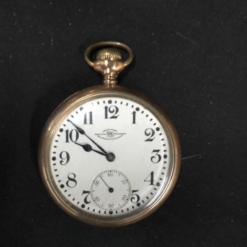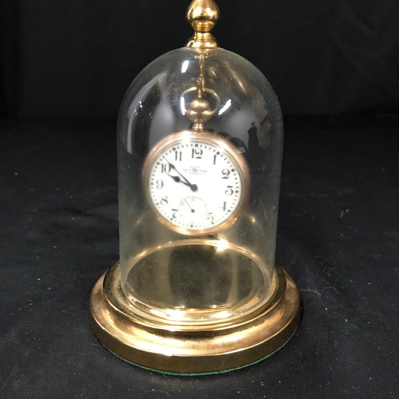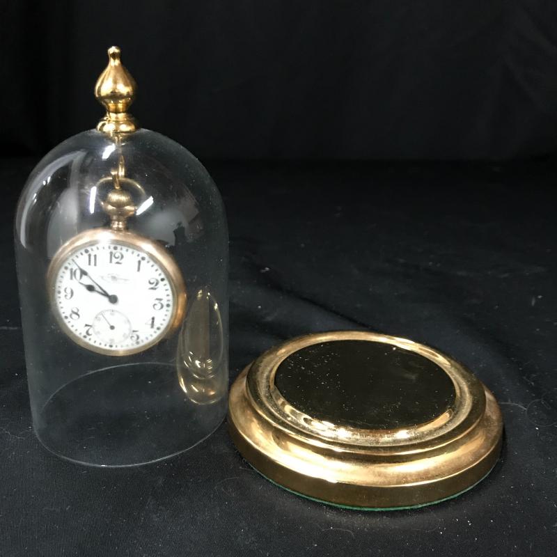 Official Standard Antique Pocket Watch hangs inside glass globe to display on table top. Watch is not currently running but in good condition otherwise. 4”d x 6”h Shipping or local pick up in Asheville