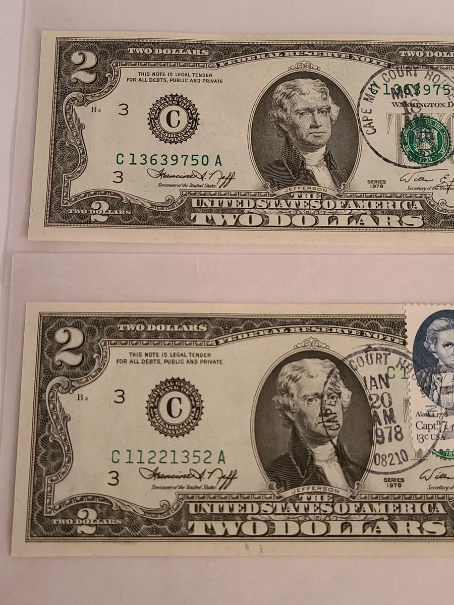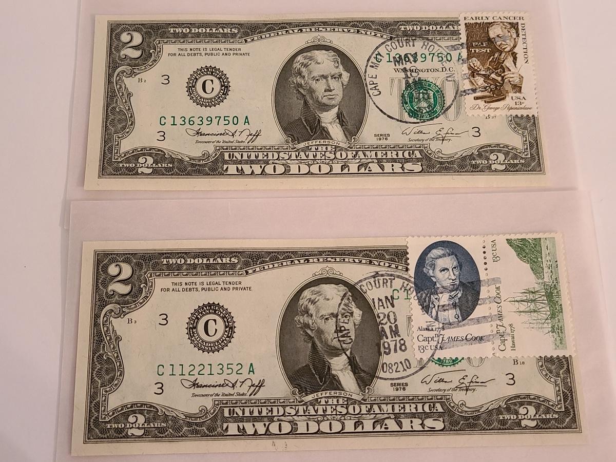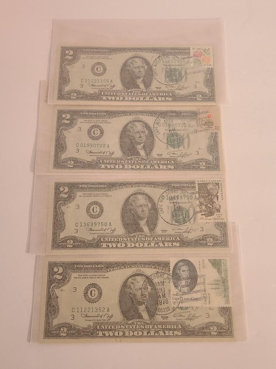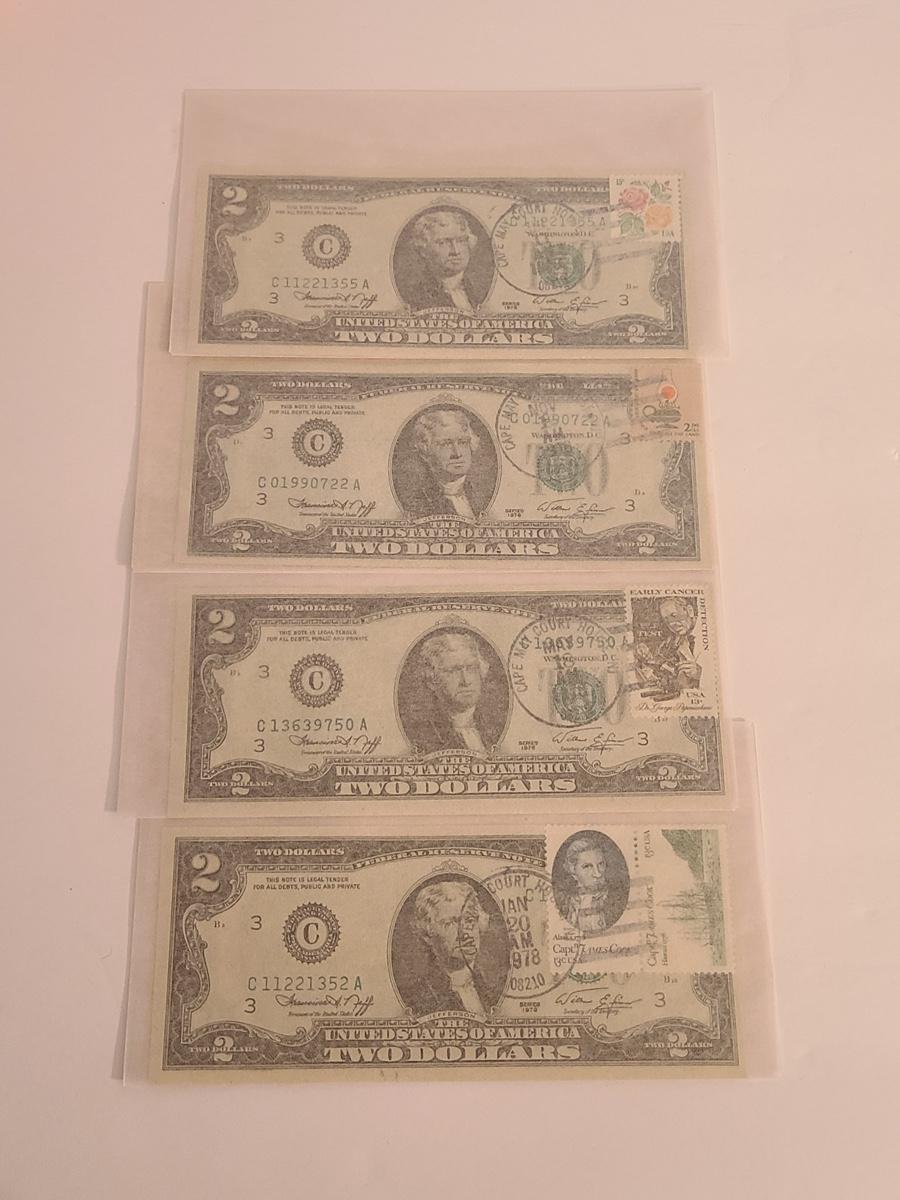 Lot 243: Four $2.00 Bills Stamped and Sealed