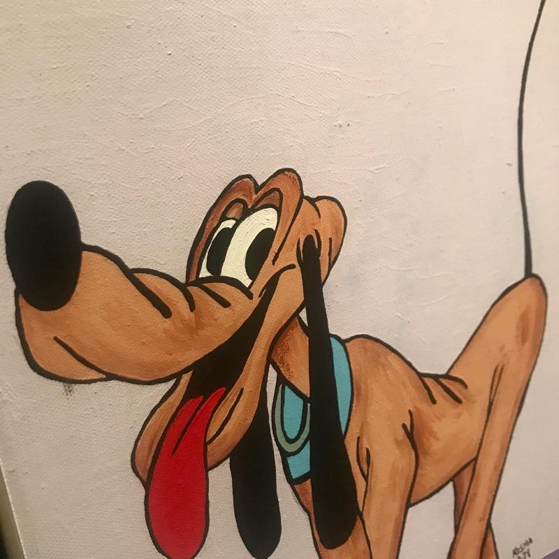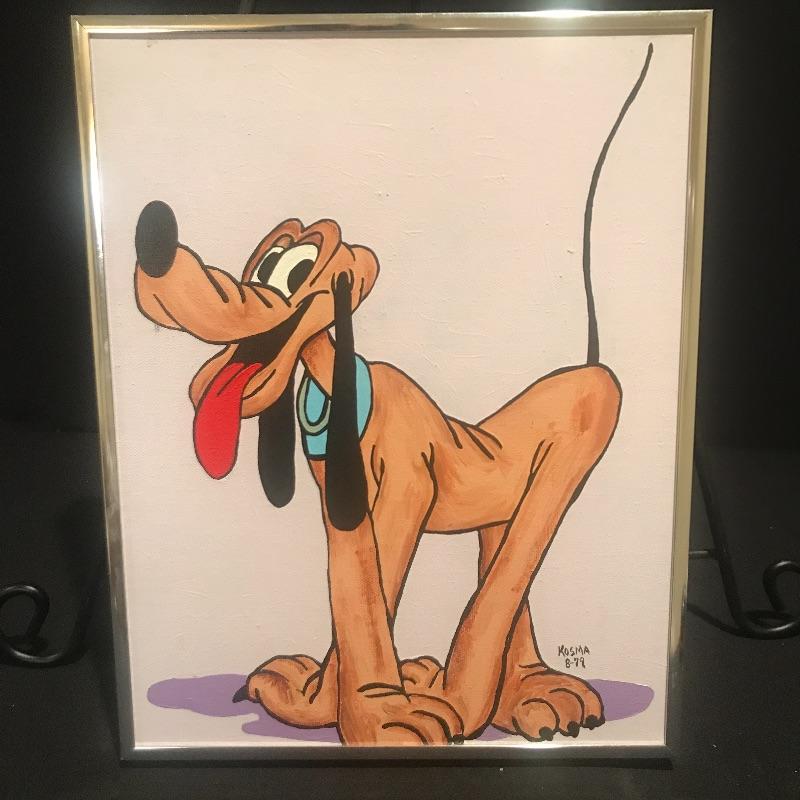 Who doesn’t love Pluto! This painting captures this lovable character on a stretched canvas that’s is framed at 14.5” x 11.5”. It was done by a relative of our client who is clearly talented. Signed Kosma. Shipping available.