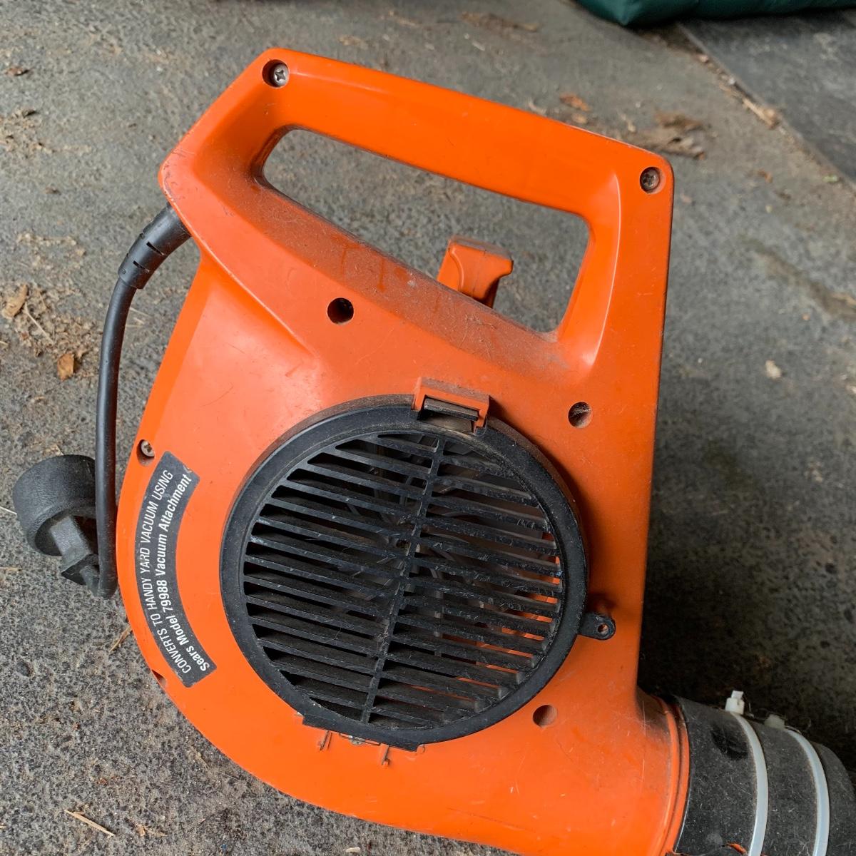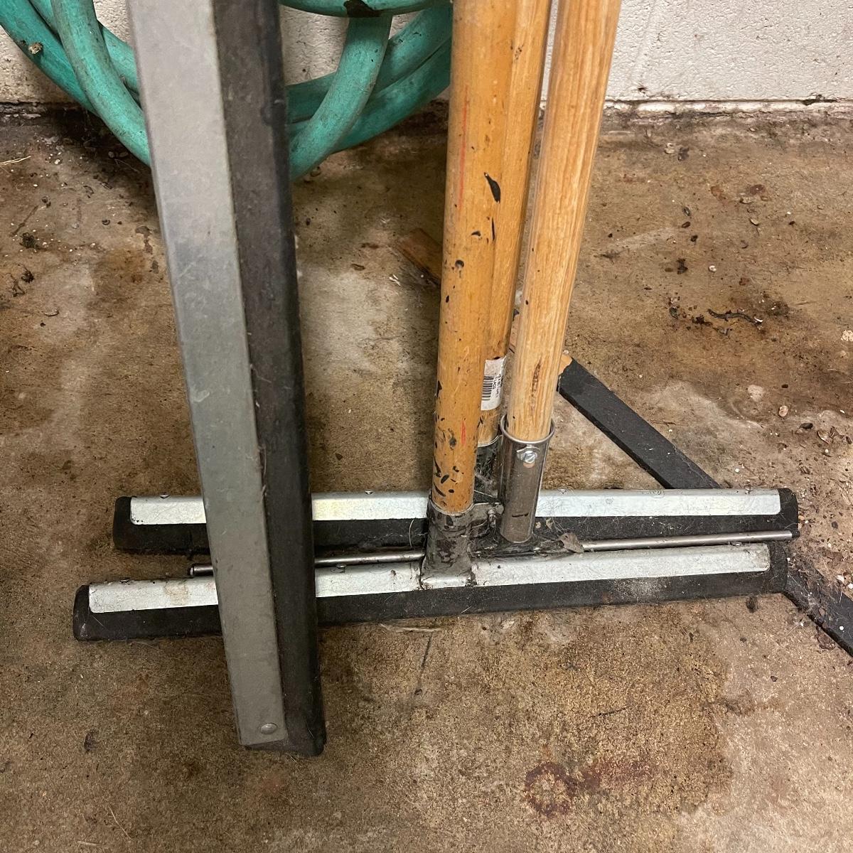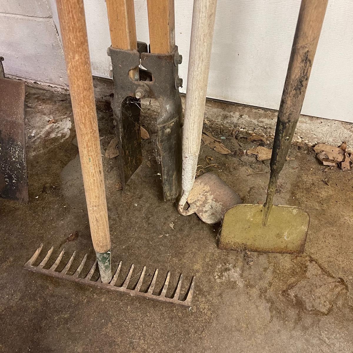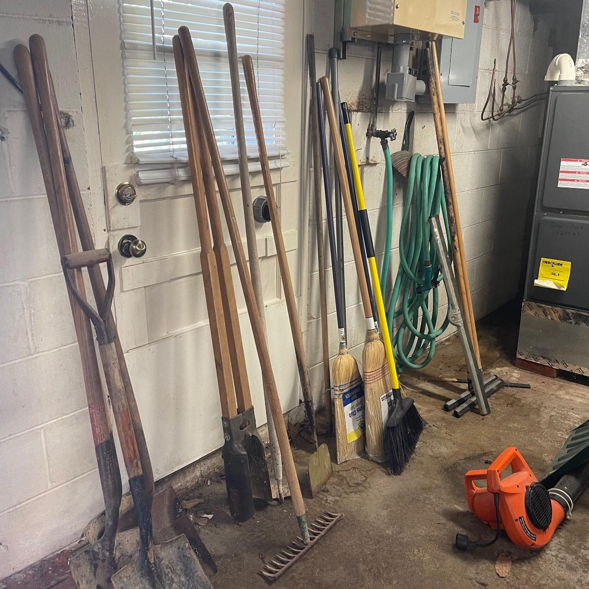 This lot includes a variety of garden tools, like hoe’s, hand tillers, and shovels. There are also a few squeegees, a snow shovel, a post hole digger, and a few brand new brooms. A garden hose with a nozzle is included as well. Additionally, there is a Sears Craftsman electric Leaf Blower, powered on when tested. Local pickup only.