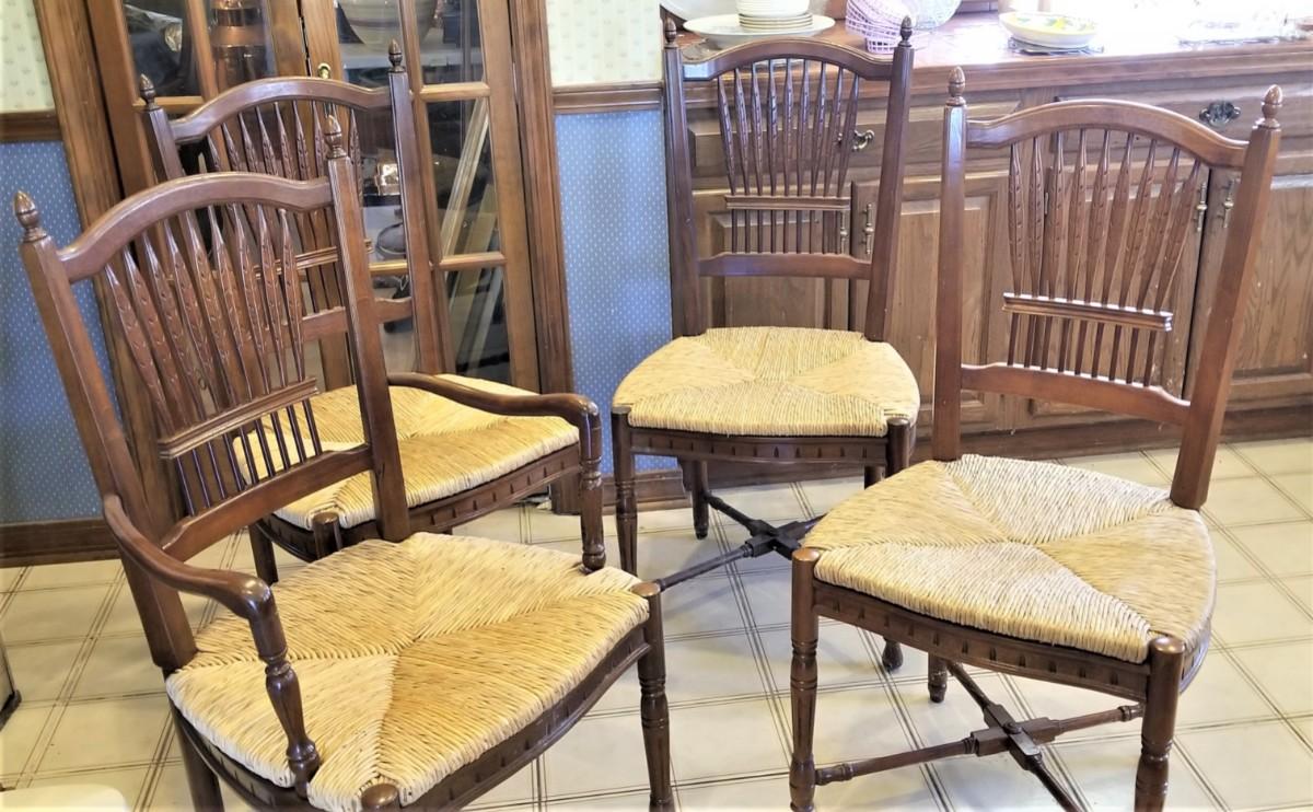 Lot #243  Group of 4 Arrowback Chairs - Rush Seats