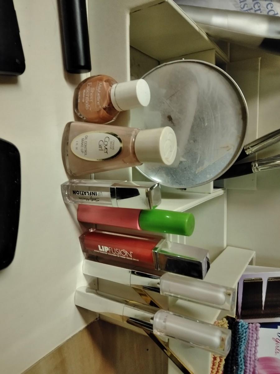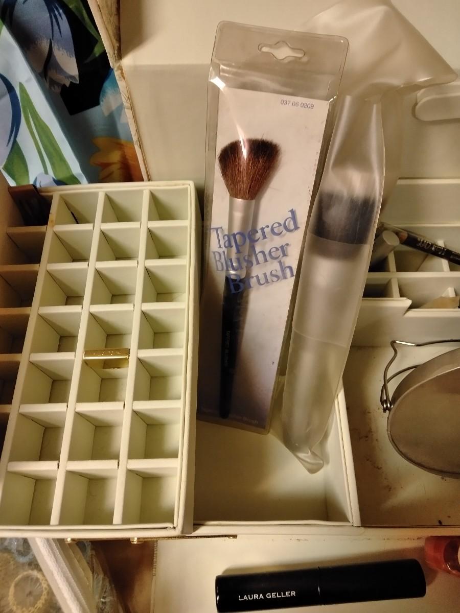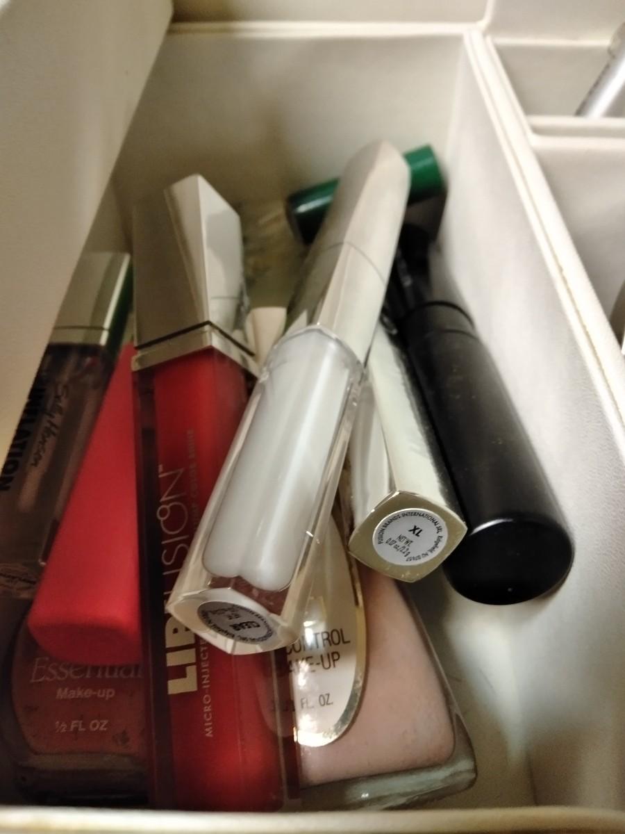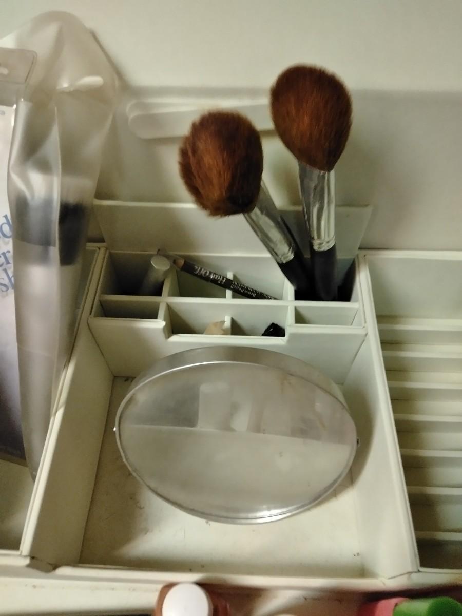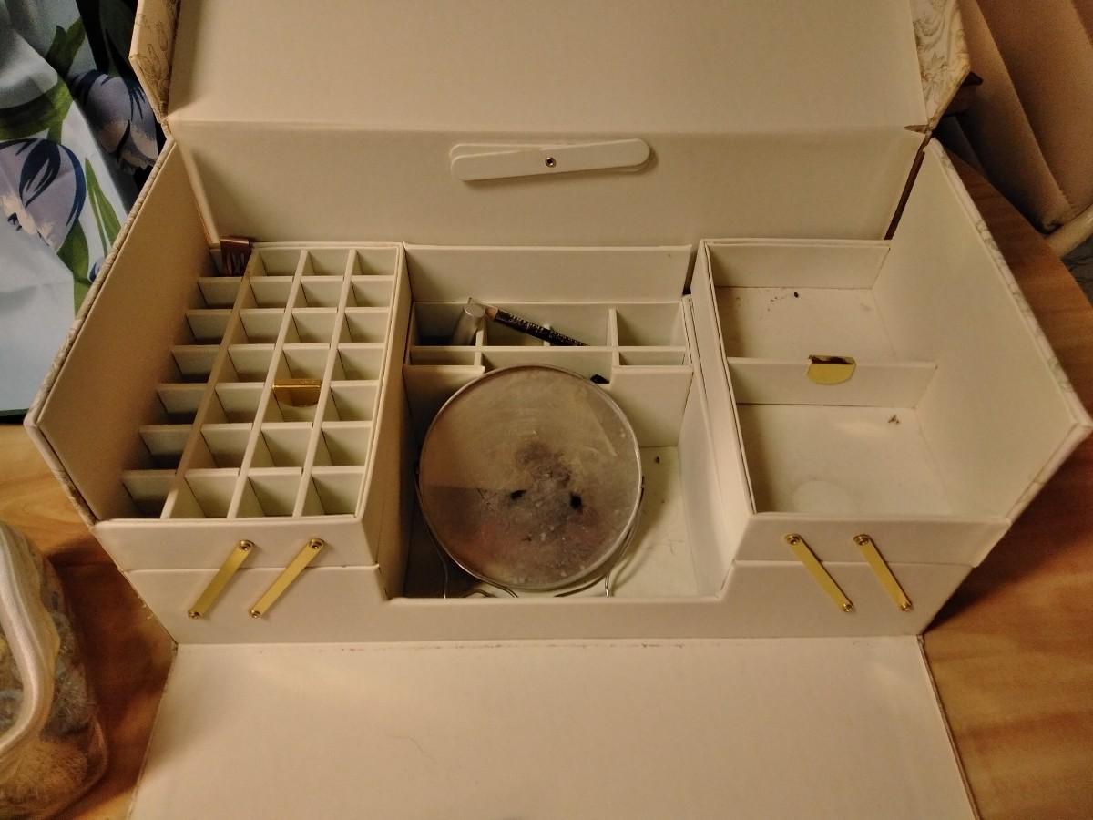 MAKE UP ORGANIZER BOX WITH MAKEUP ITEMS.