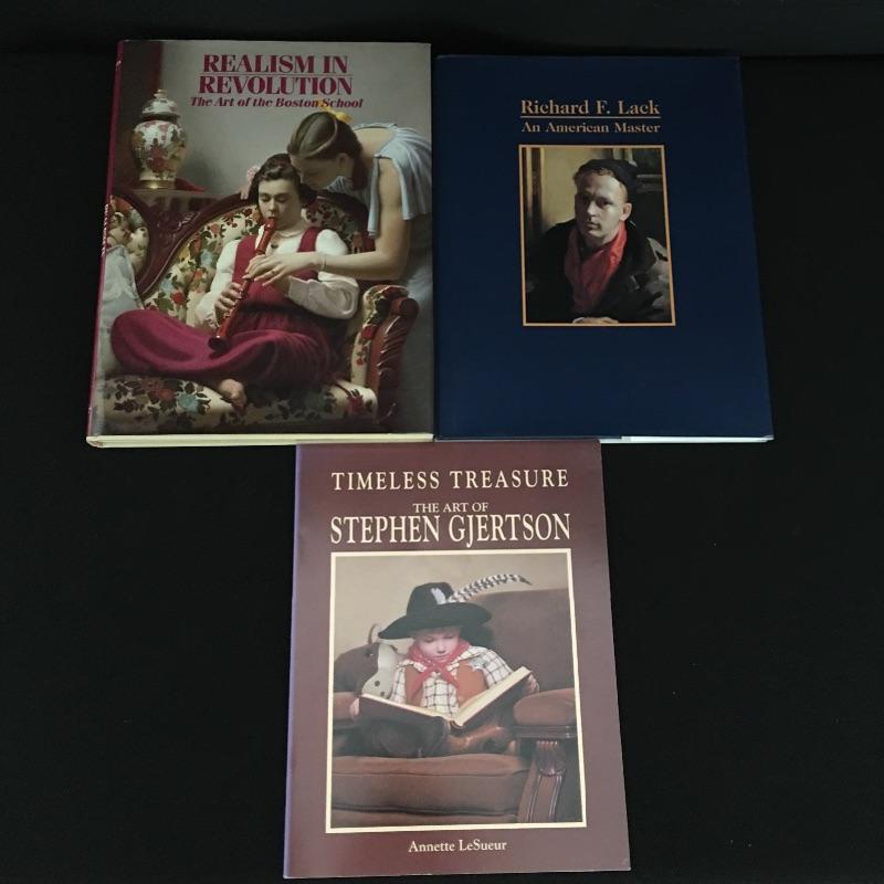 These three signed Books are wonderful hardcover books about Realism. You'll find Timeless Treasure signed by Stephen Gjertson. An American Master signed by Richard Lack that also includes a numbered unframed etching (approx. 6.5” x 4”) that is attached in an envelope inside cover. Lastly Realism in Revolution is signed by Richard Lack and many more artists from Classical Realism Revolution, see pictures.