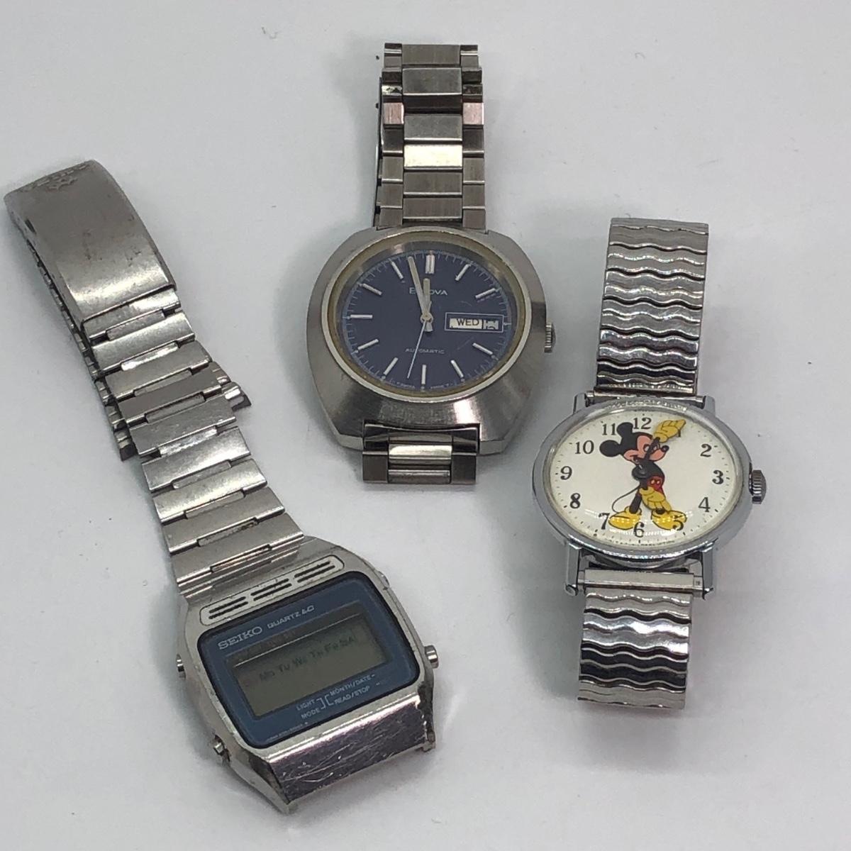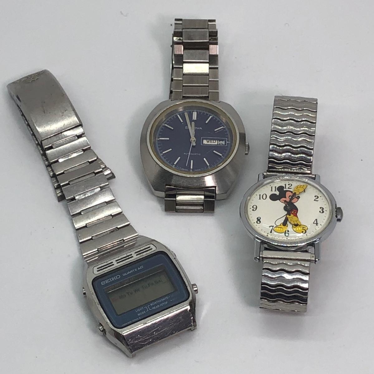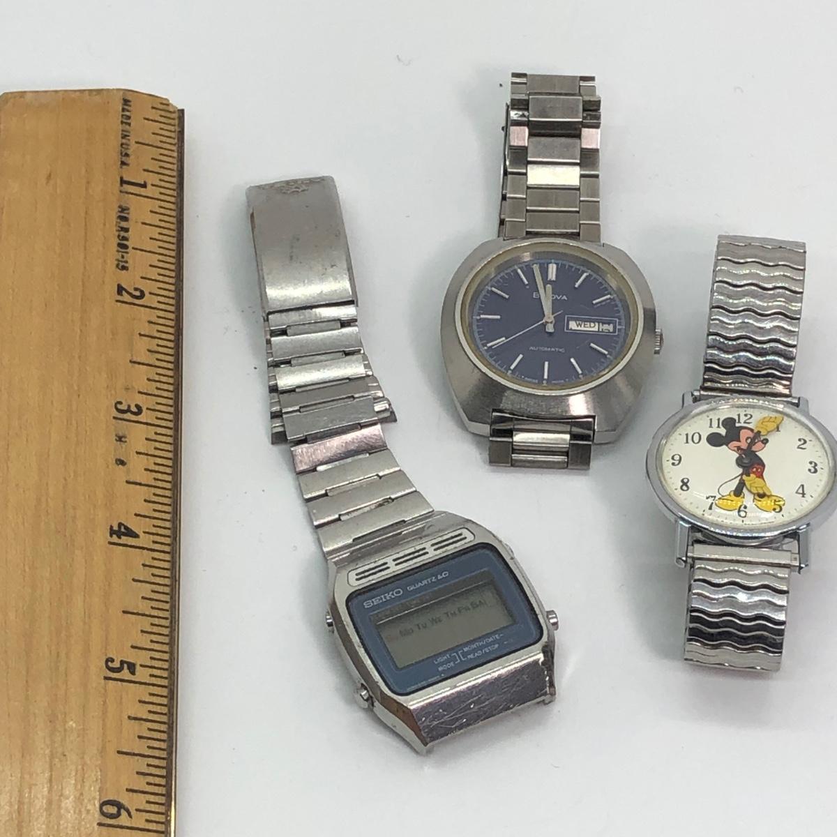 LOT 243M: Mickey Mouse Watch w/ Men's Bulova Watch & Seiko Watch