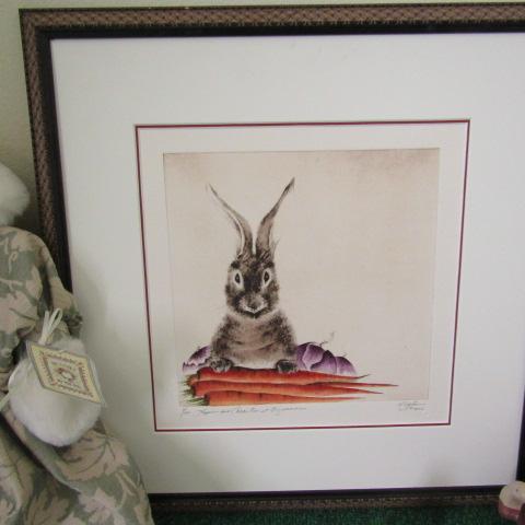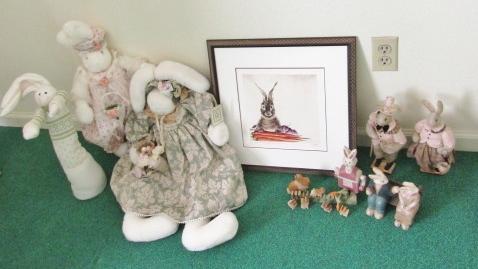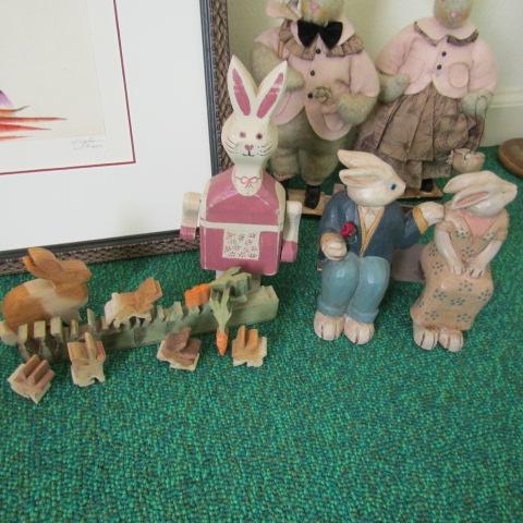 "BUNNIES BY THE BAY, WOODEN BUNNIES, PLUSH BUNNIES AND BUNNIES IN A SOCK. THERE'S EVEN A BUNNIE PICTURE SIGNED AND FRAMED