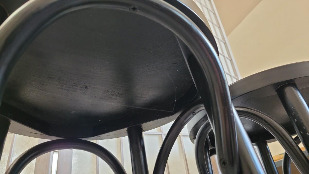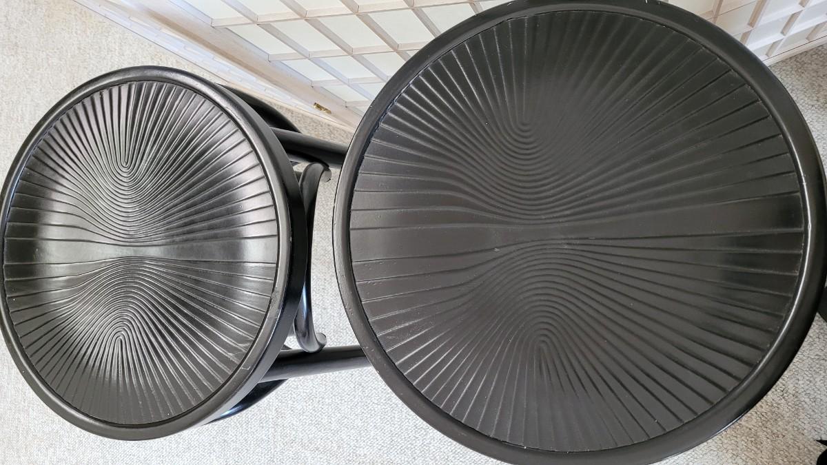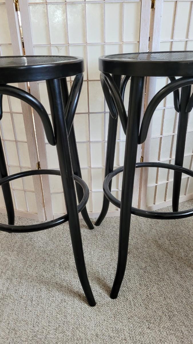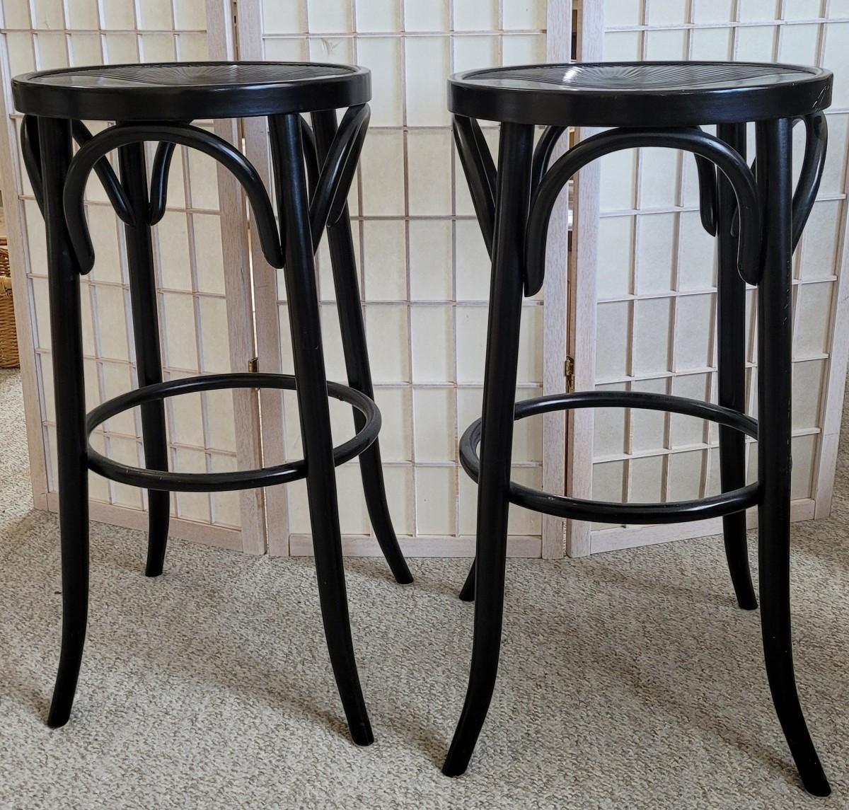 Lot 244: (2) Vintage Black Wood Bar Stools