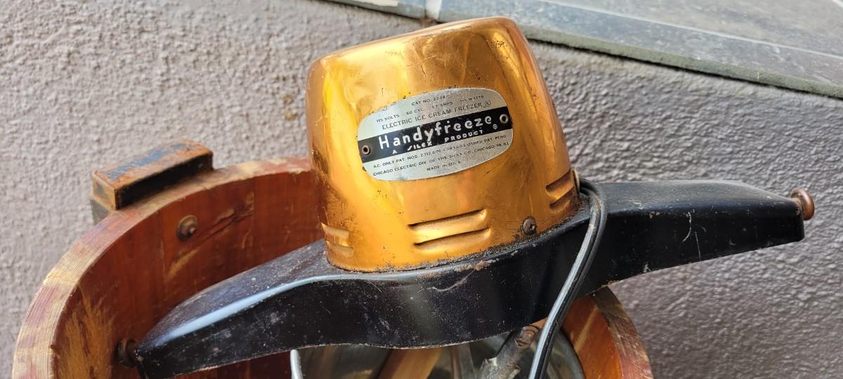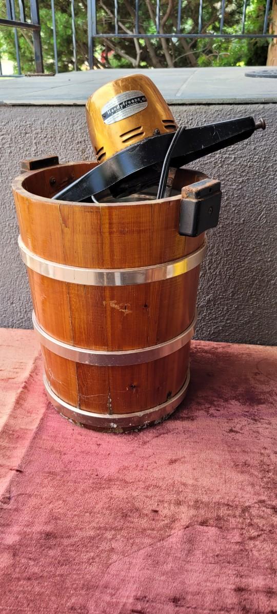 Lot 244: Vintage Wood Walled HANDYFREEZE Ice Cream Maker