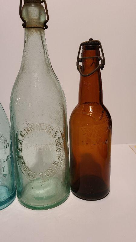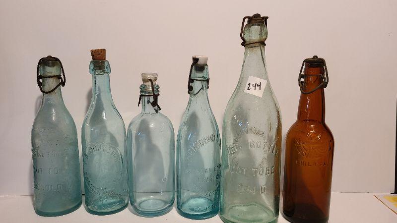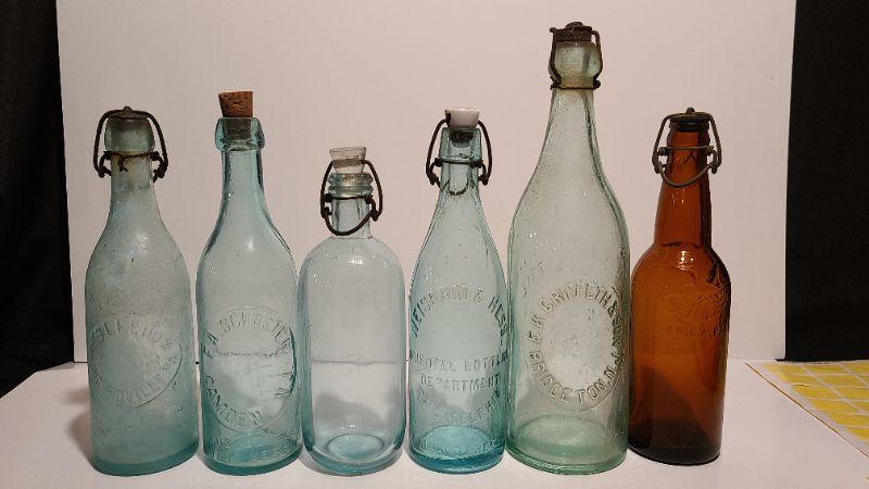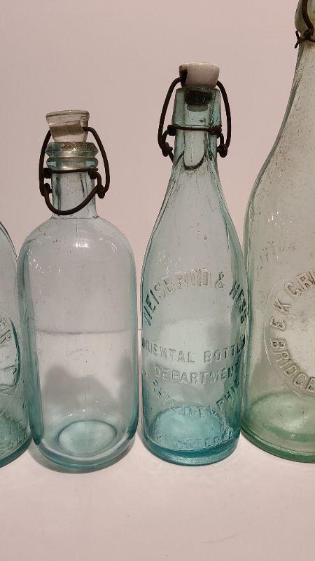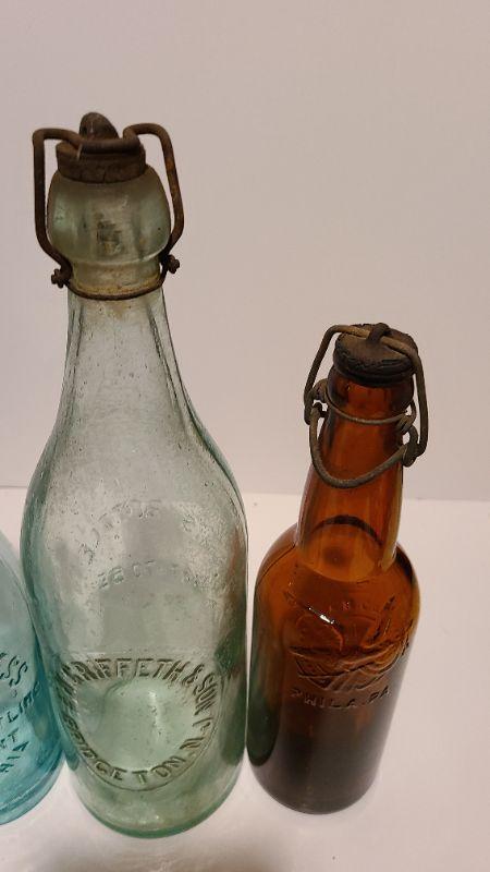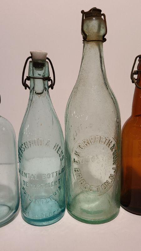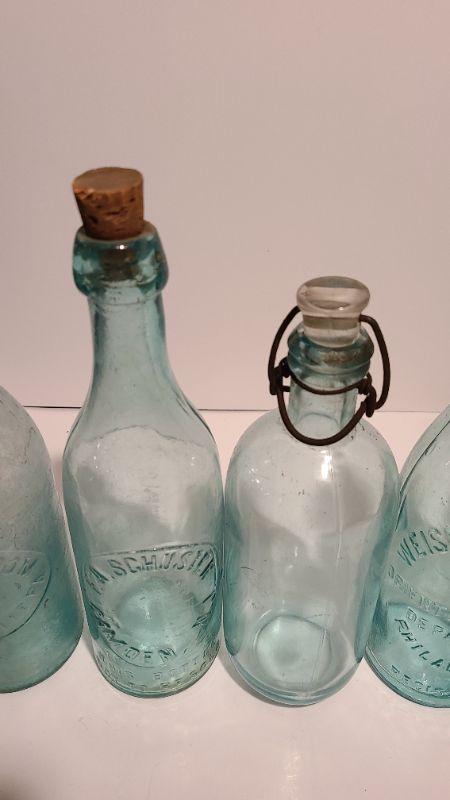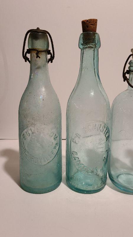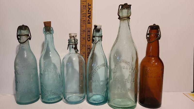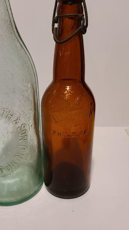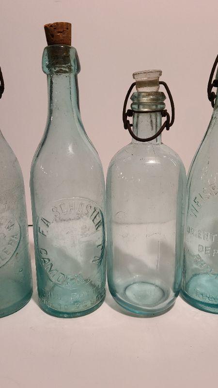 Bottles: FA Schuster Camden, Weisebrod & Hess, EK Griffith & Sons, Esley Concordville, PA, Amber Eagle Philadelphia bottle. Each lot is unique and you will need to see all pictures. Pictures have been taken from all side to see condition and markings. What you see in the pictures is the actual content of the lot and the pictures are the best representation of the bottles. All bottles are sold-is according to the pictures. For further information please google the makers marks for age.