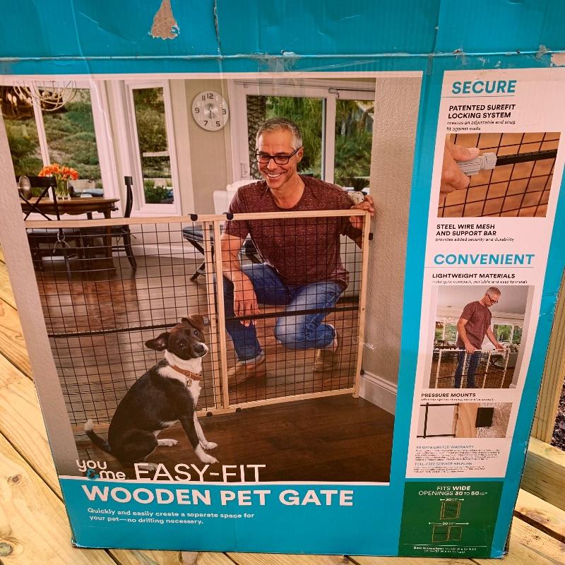 This lot includes one You & Me Easy Fit Wooden Pet Gate and one Safety 1st wooden gate. The You & Me pet gate comes with its box and appears to be in good condition. Dimensions are on box. The Safety 1st wooden gate has some scratches and signs of wear (see photos). It measures about 26in x 39in. Local pick up only.