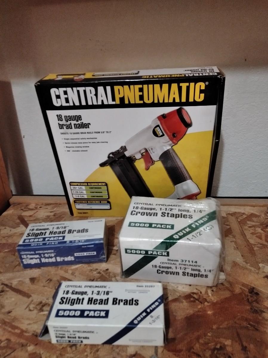 CENTRAL PNEUMATIC 18 GUAGE BRAD NAILER WITH BRADS