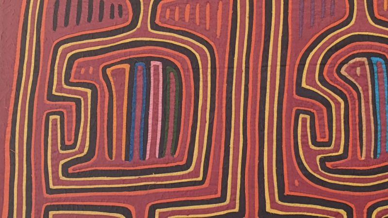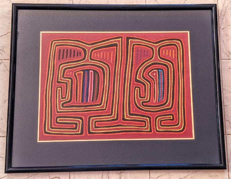 Lot # 244 Framed Mola Panama Professionally matted and framed Red Blue Yellow