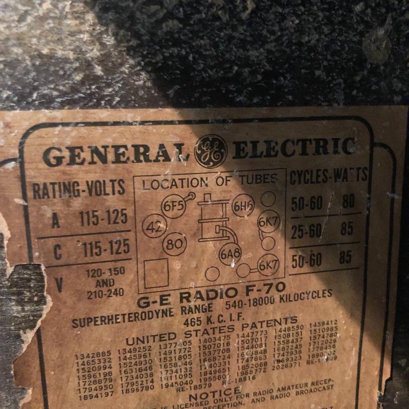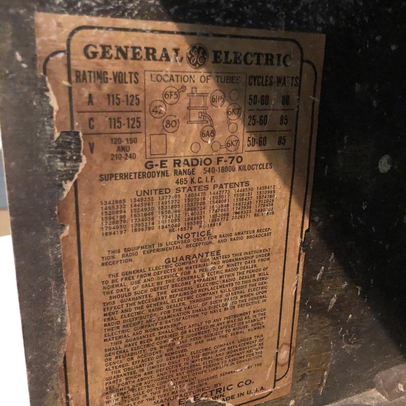 This lot contains a General Electric Radio model# F-70 and a General Electric AM Radio.