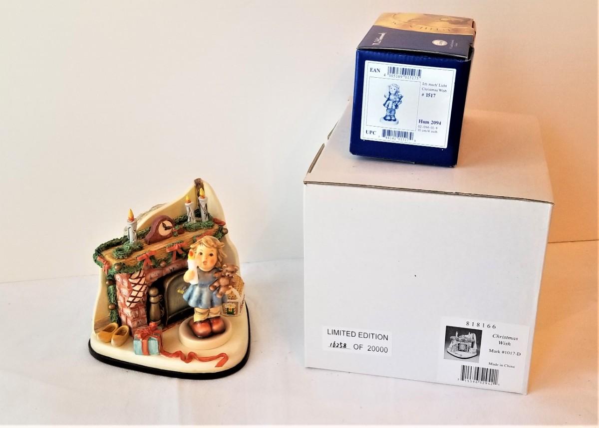 2 piece Hummel "Christmas Wish" Limited Edition set - they come with the boxes - #16258 of 20,000 made. #2 in the Musicfest collection. Girl figurine is 4" tall. All in good condition.