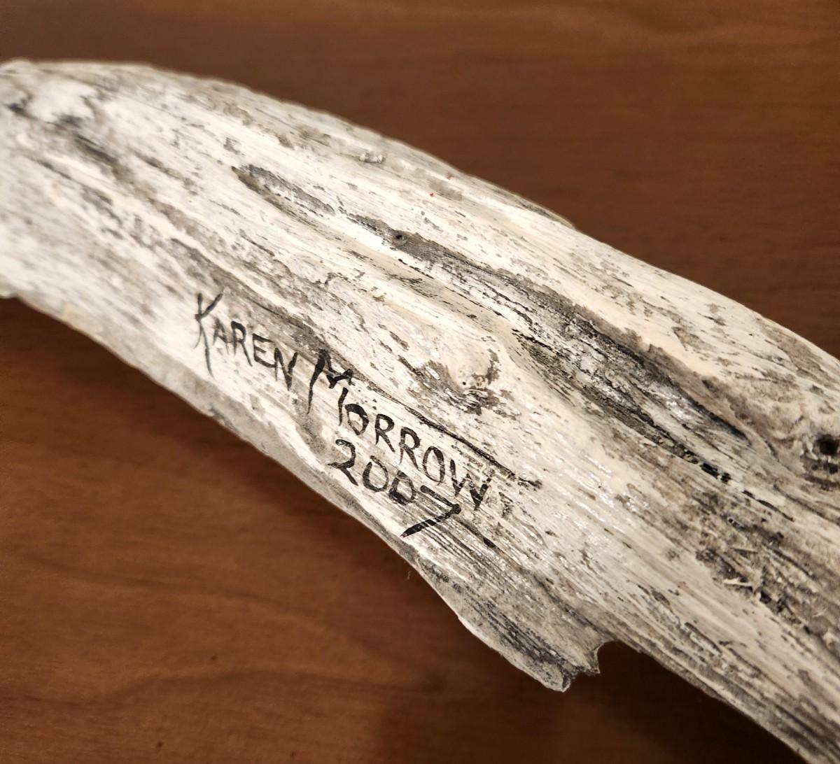 I love this Louisiana Santa art! Both hand painted on driftwood - long piece is signed by Karen Morrow, dated 2007. The signed Collywobbles Santa piece is on stand, 9" tall. Both in good condition.