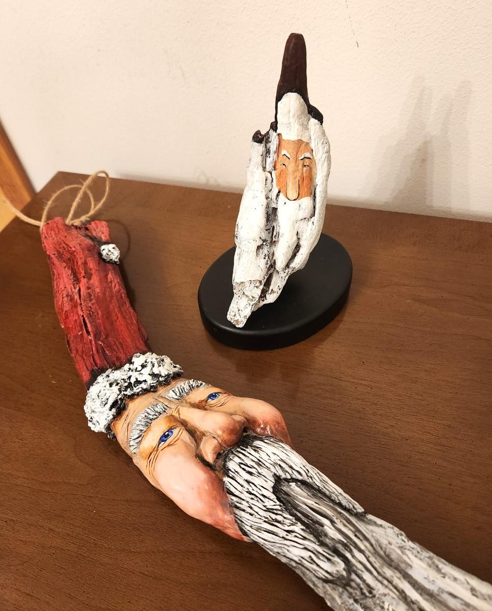 Lot #244 Lot of 2 Driftwood Art Pieces - Santa Claus - both signed
