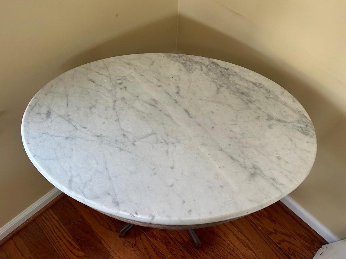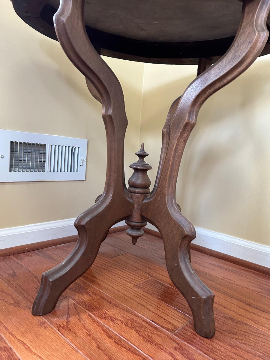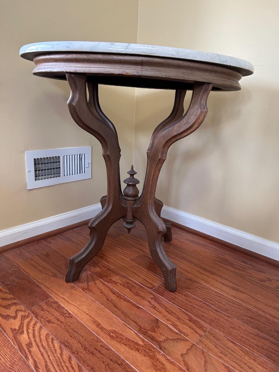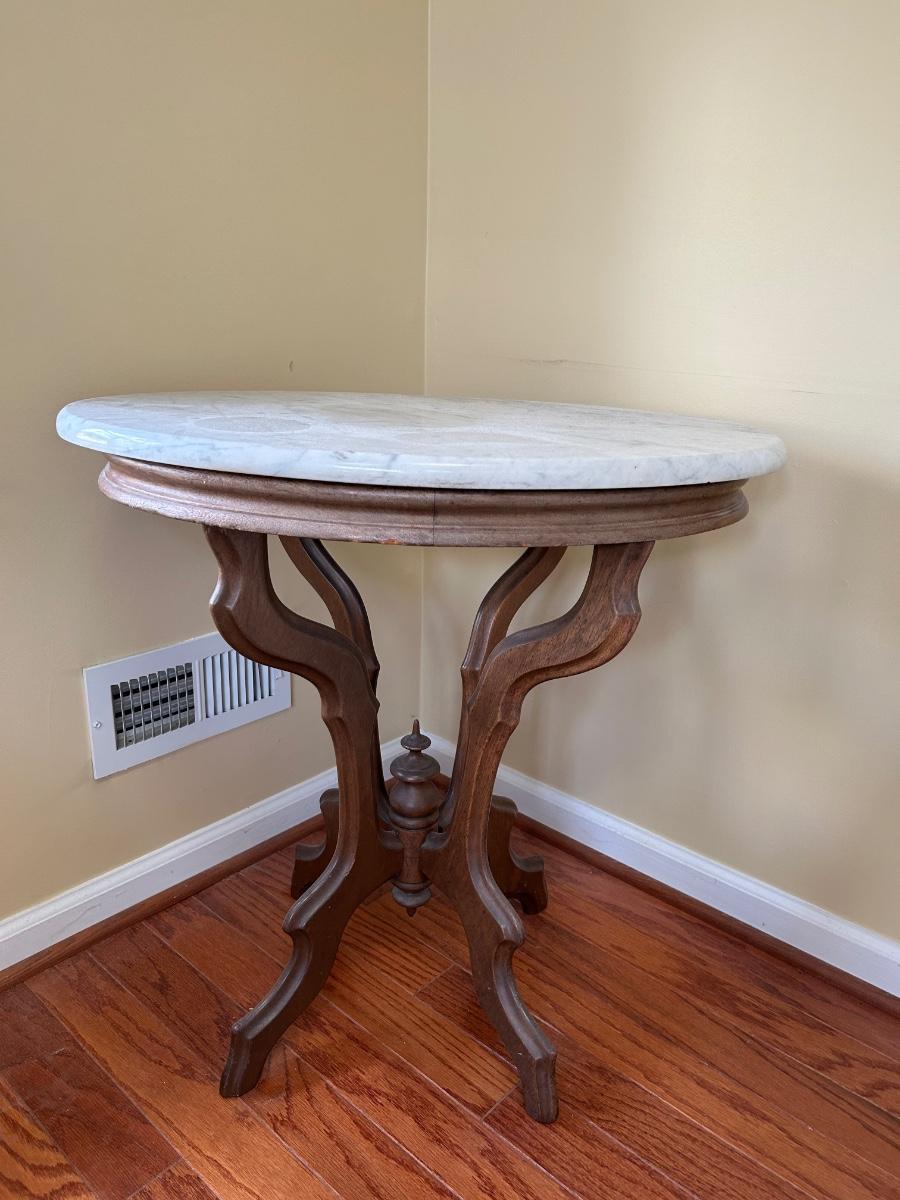 Lot 244: Marble Top Wood Frame End Table