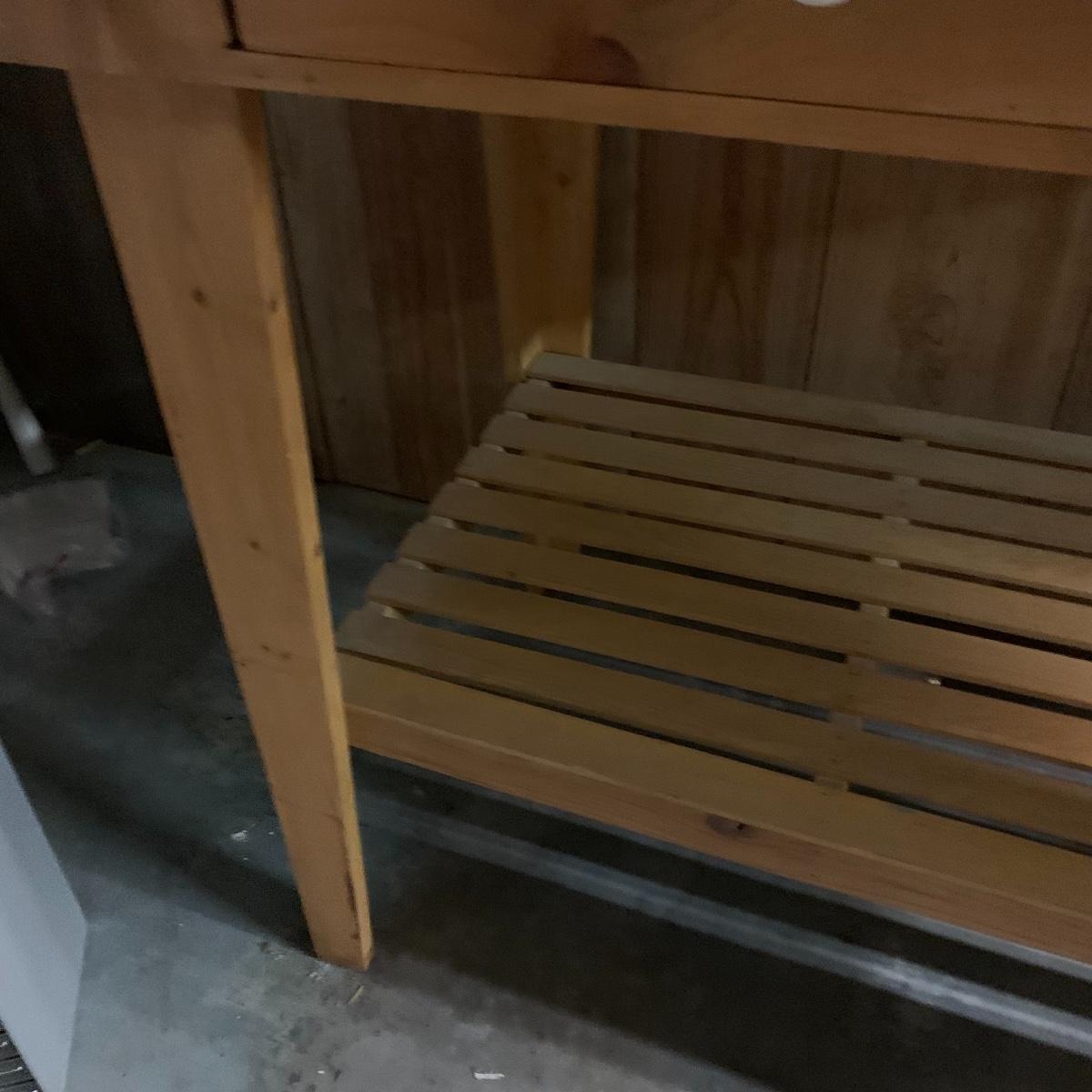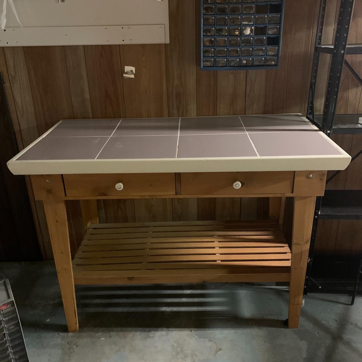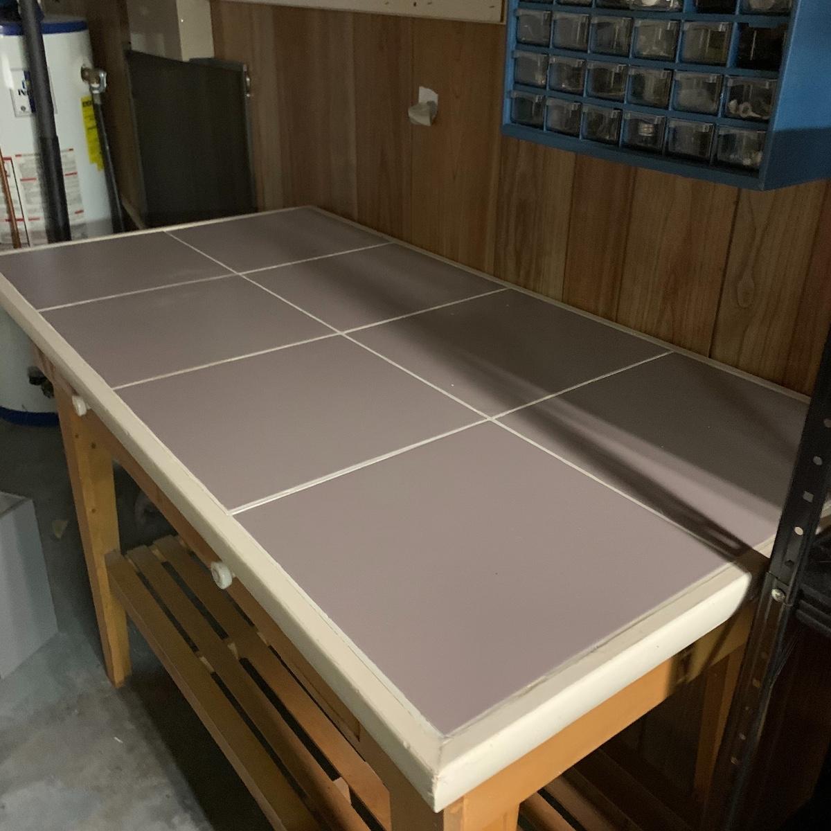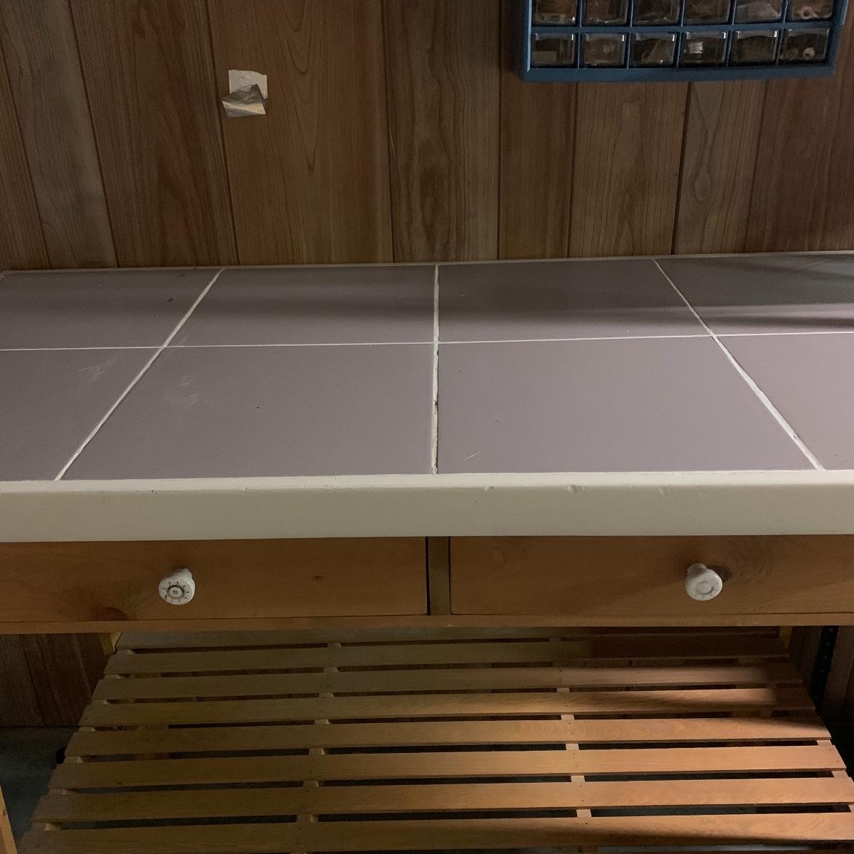 This one’s for you gardeners! Now you can have an official, designated planting station. This piece features a wooden frame with two drawers, and a tile table top. Measurements are 50” wide X 36” tall X 26” deep. This table is in good condition and ready for someone with a green thumb to put it to use. The winning bidder must bring assistance to load this item. Local pickup only.