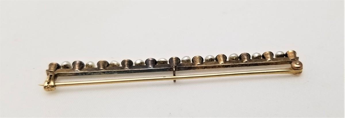 Lot #244 Vintage Bar Pin - 14kt gold, seed pearls