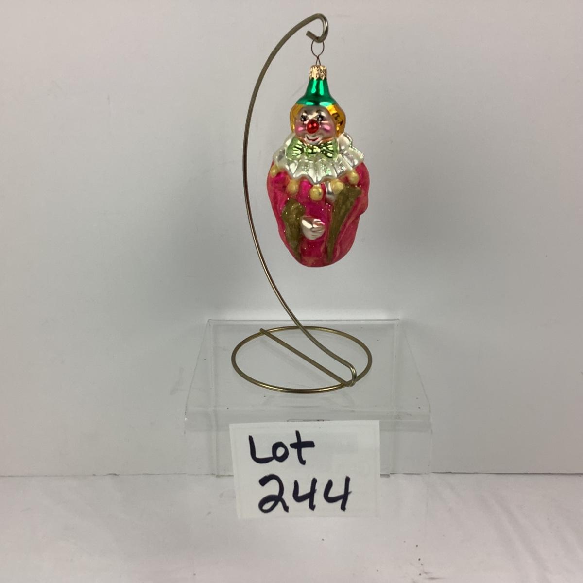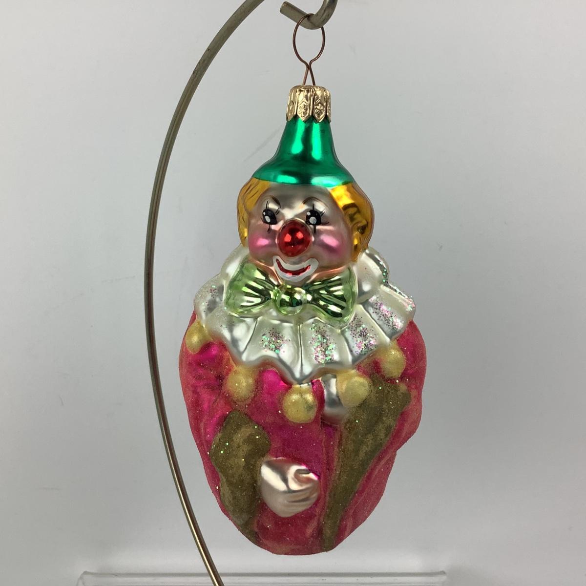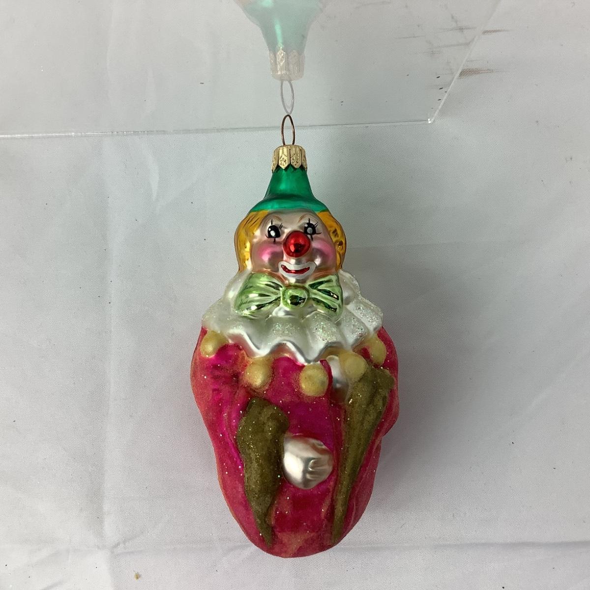 Lot 244 Vintage Christopher Radko CLOWN Roly Poly Hand Blown Glass Ornament