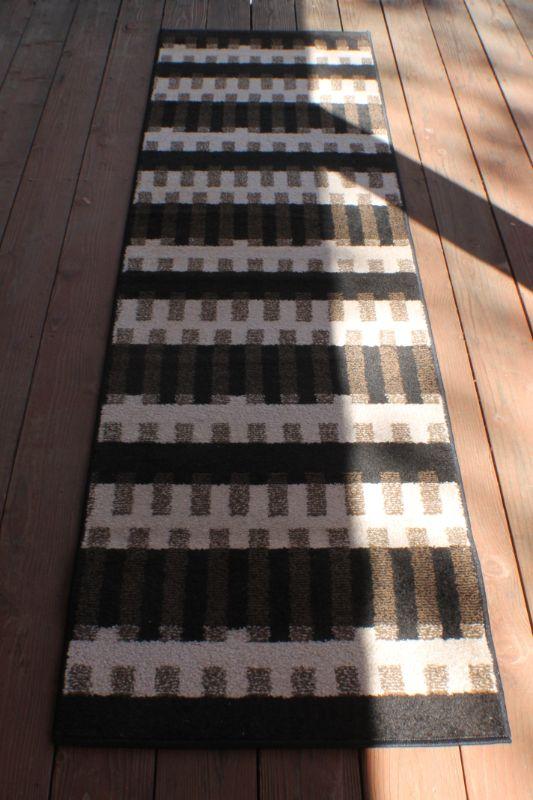 Lot 2-442: Large Rug Runner 93" x 25.5" Black White and Beige Blocks
