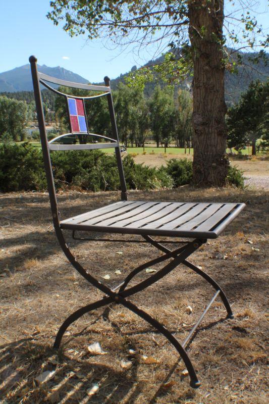 Lot 2-444: Metal Outdoor Chair w/ Tile Accent 34" x 19.5"