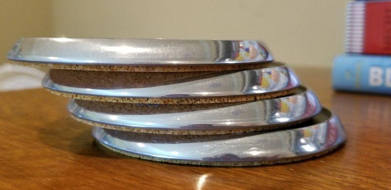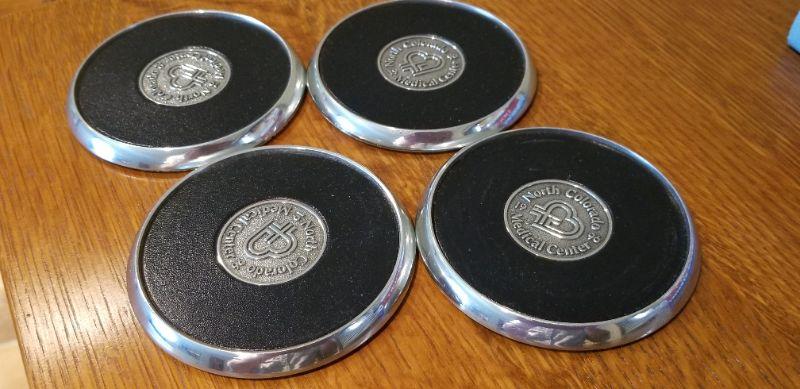 LOT #245: Vintage Leather and Chrome Plated 1996 Medical Center Presentation Coasters
