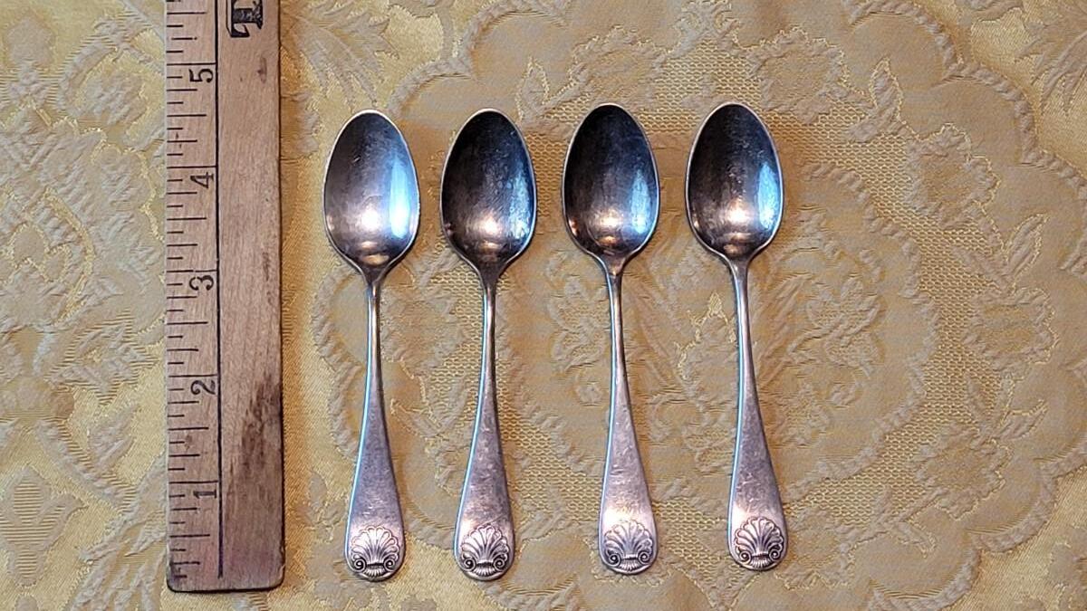 Lot 245: Vintage & Antique Silver Plate (2 Patterns) - Demitasse Shell Spoons & Spreaders & Serving Fork