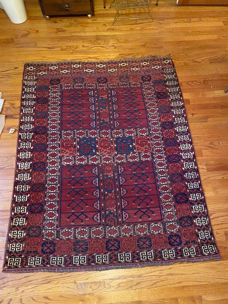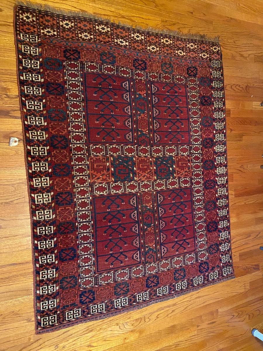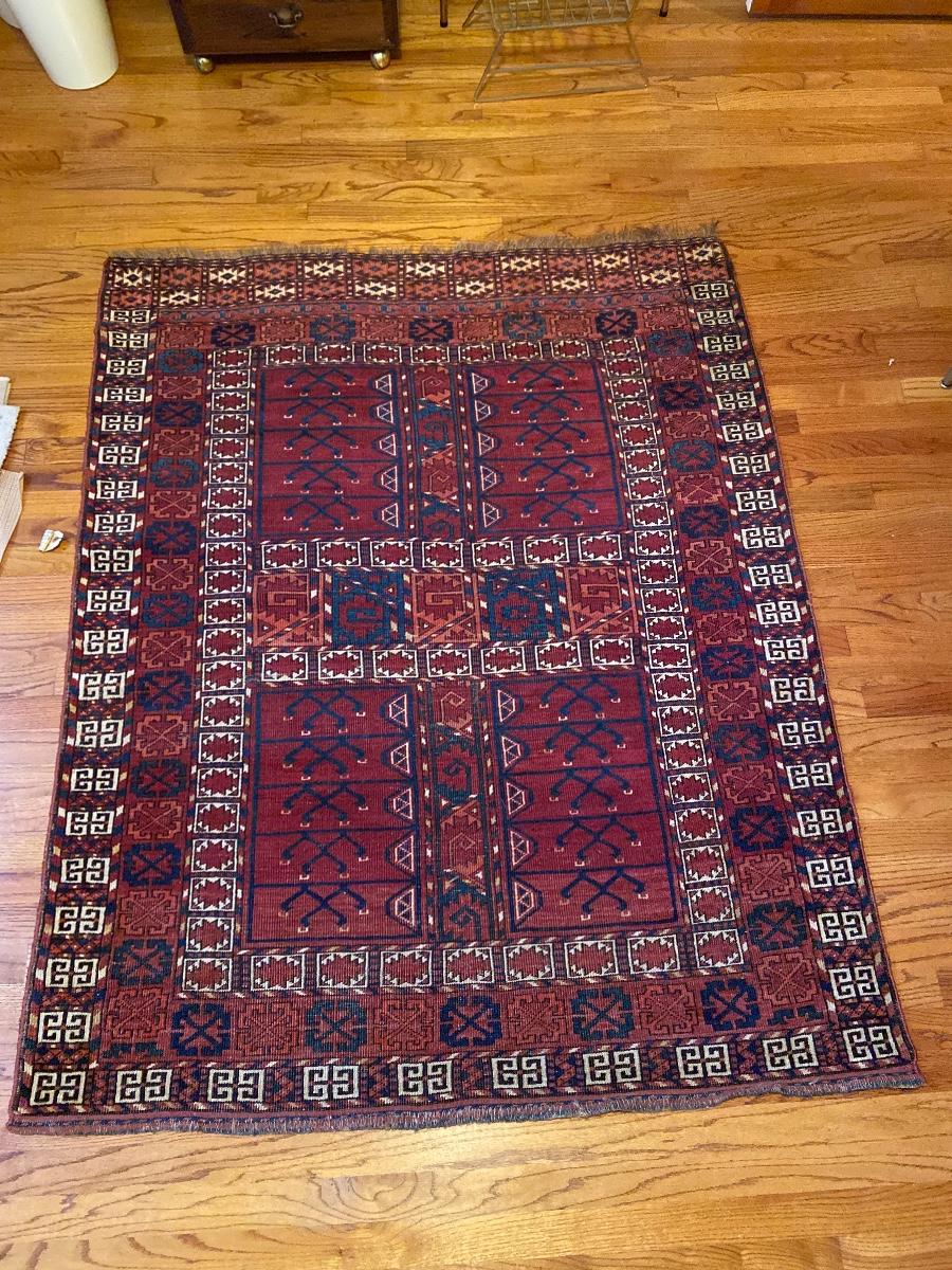 52"W x 65"L. This is thinner, perfect for hard woods. Please see all pictures as they are the best representation of the items. The pictures show condition, measurements if taken, and what is included in the lot. Due to the large amount that we photograph and the time frame, we are not always able to take measurements. All items unless noted, are pre-owned and have been used. If you purchased furniture, you must bring help. We do not allow one person to carry large furniture out on their own. Bring help, tools and a truck for the safety of our client’s homes, and your personal safety. Company policy. Thank you.