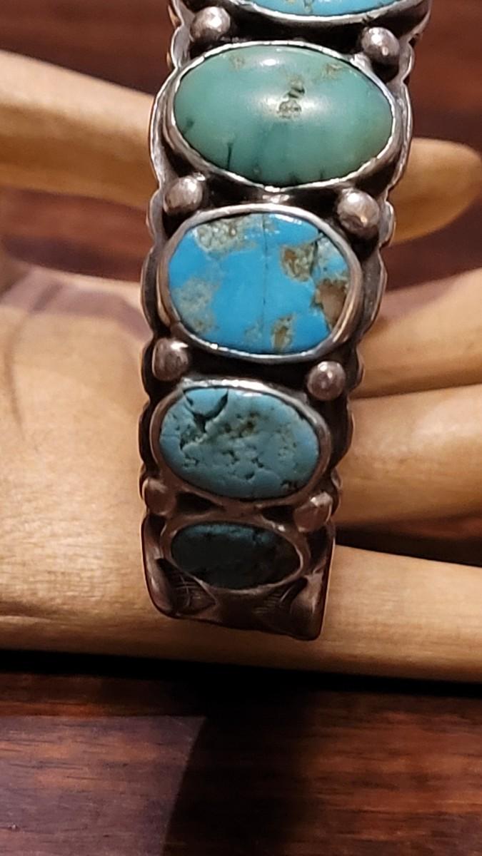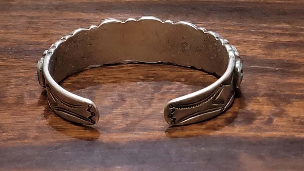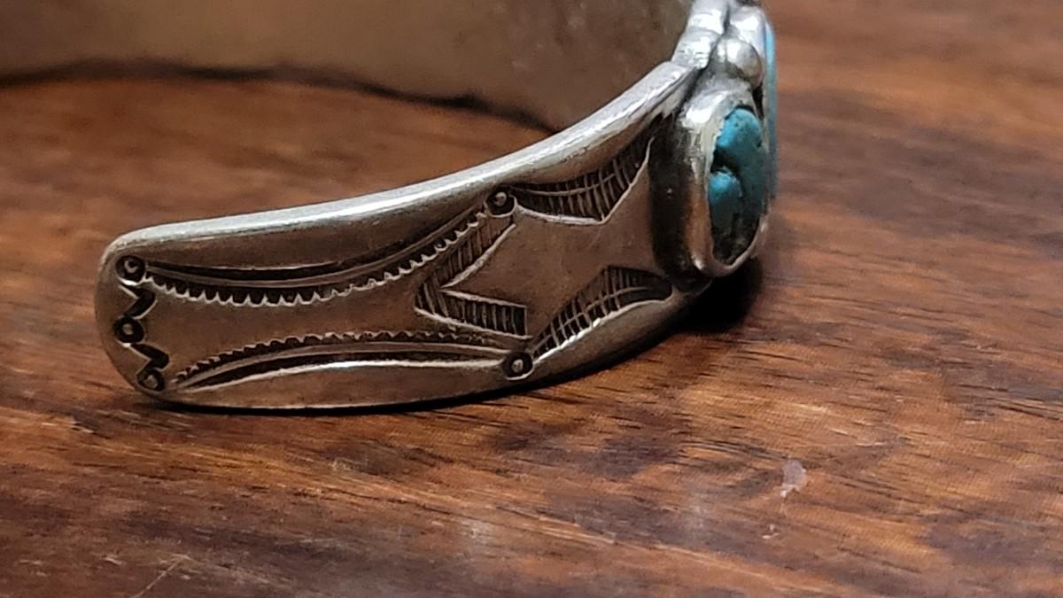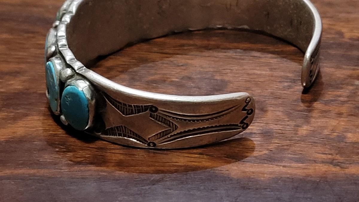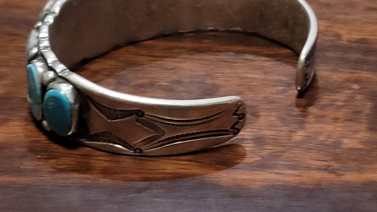 Lot 245: Old Pawn Navajo Sterling Stamped Turquoise Cuff Bracelet