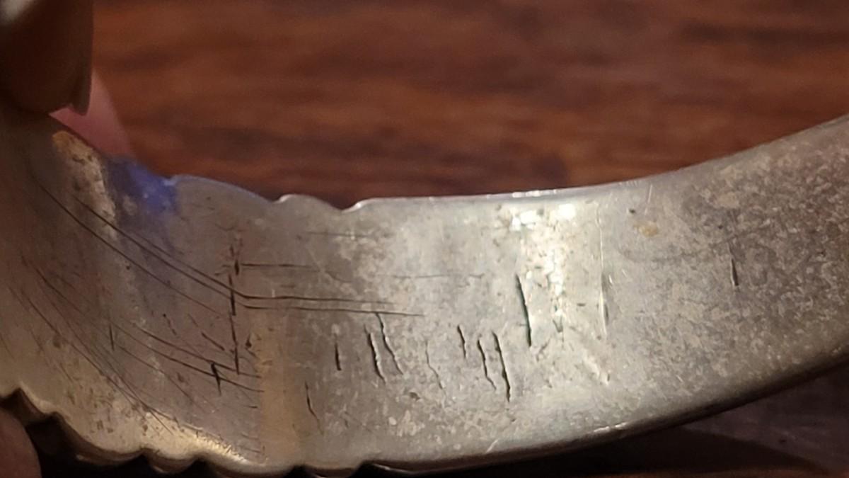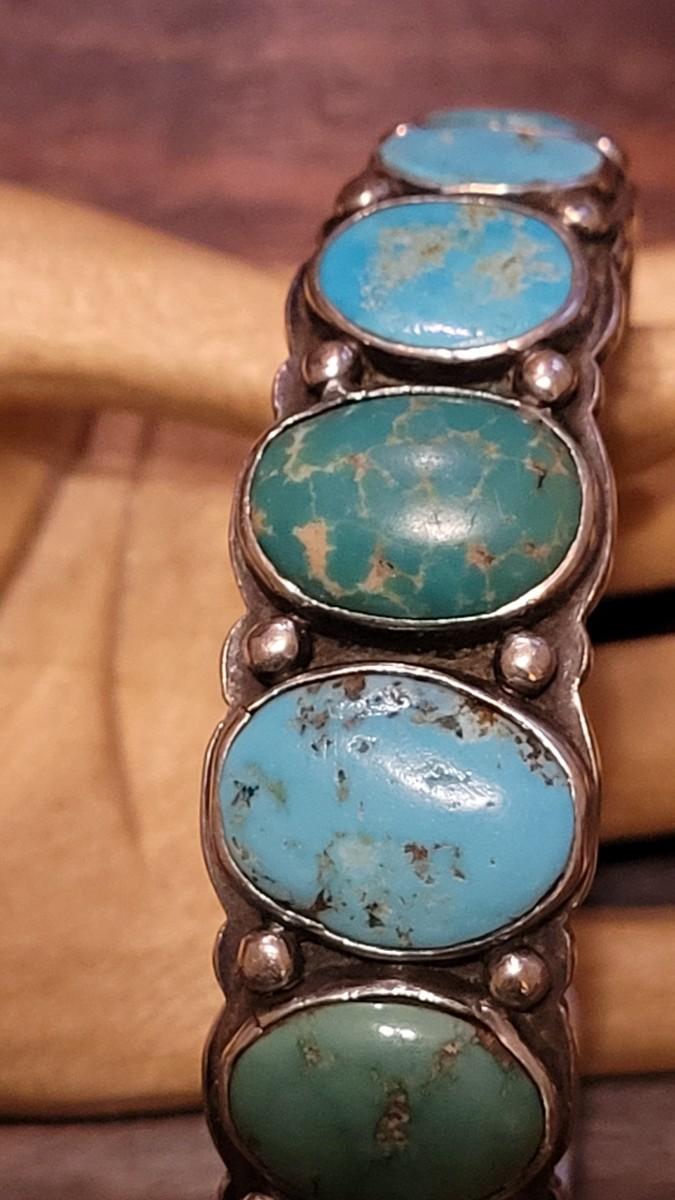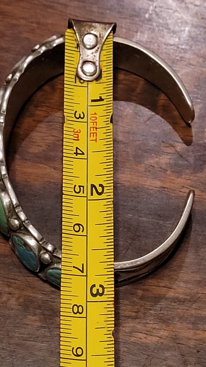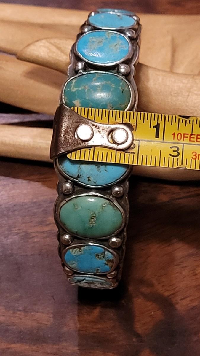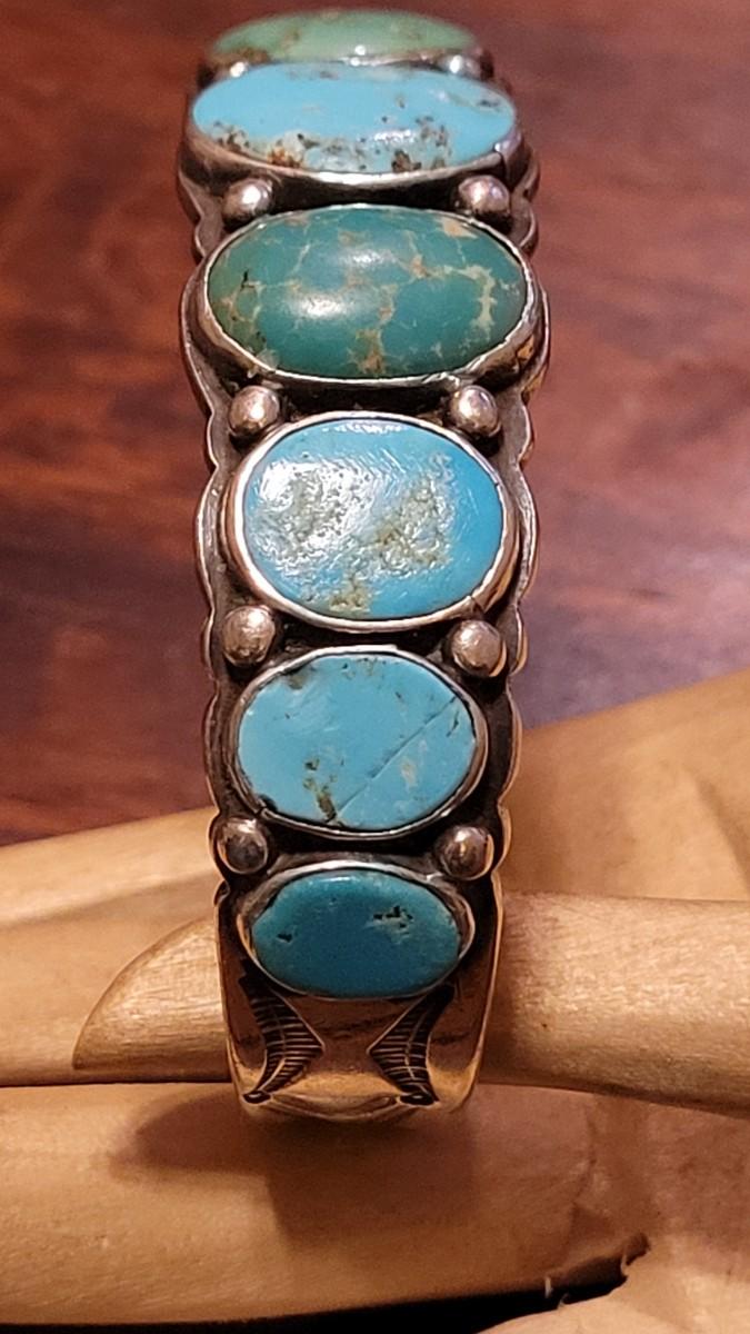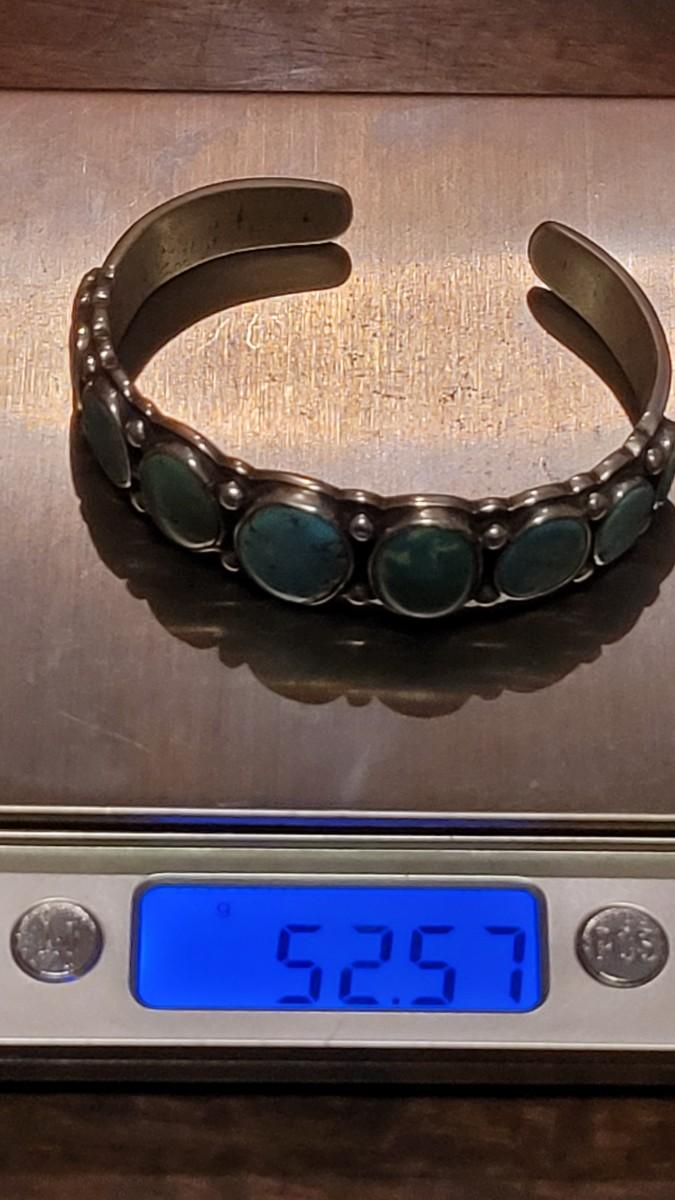 Lot 245: Old Pawn Navajo Sterling Stamped Turquoise Cuff Bracelet
