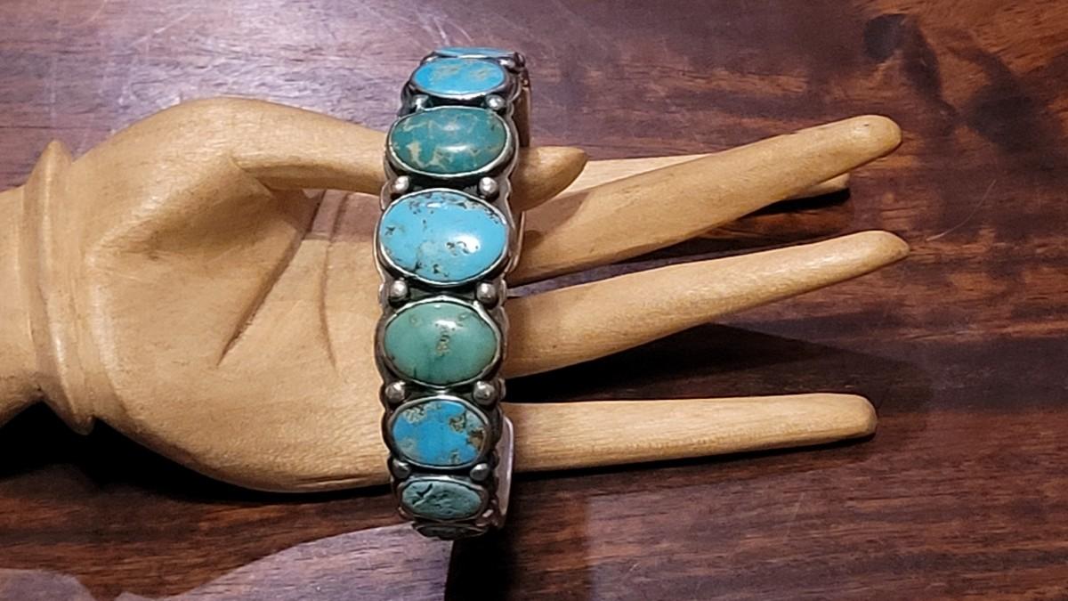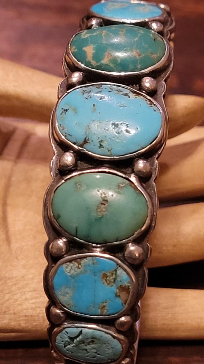 Old Pawn jewelry are pieces made by the Navajo People for the Navajo People. These pieces are often not marked or "perfect". These pieces are often heavier than "tourist pieces".