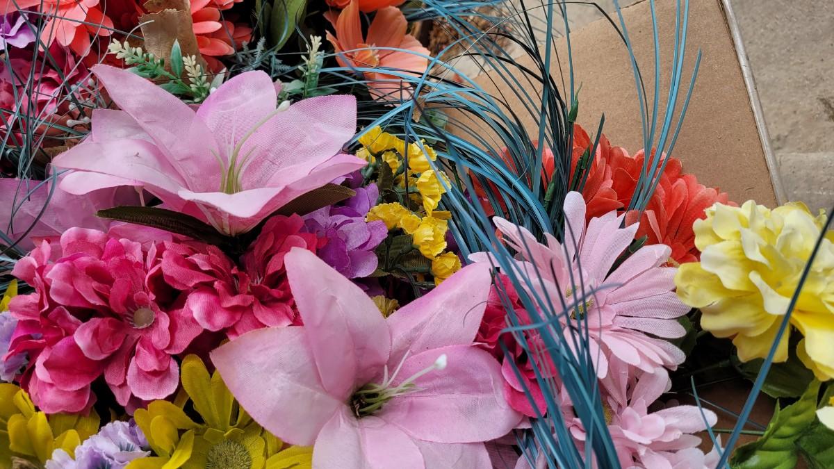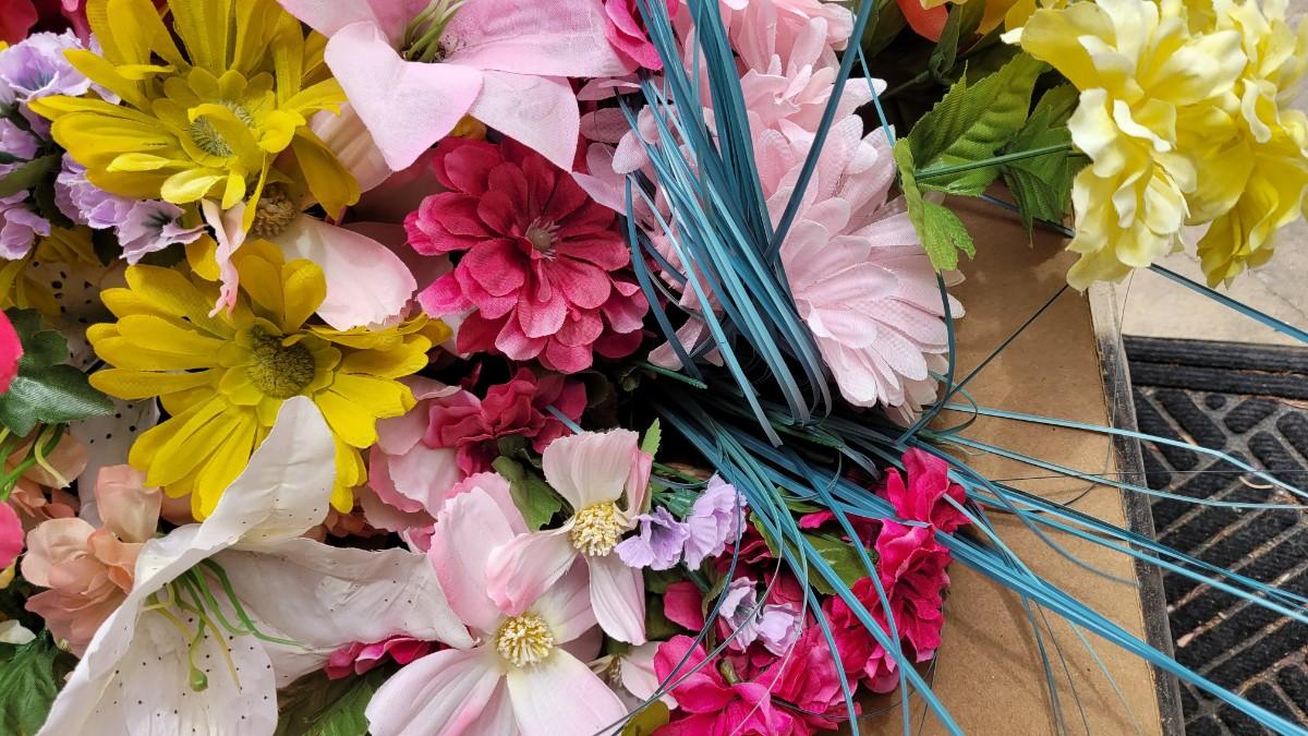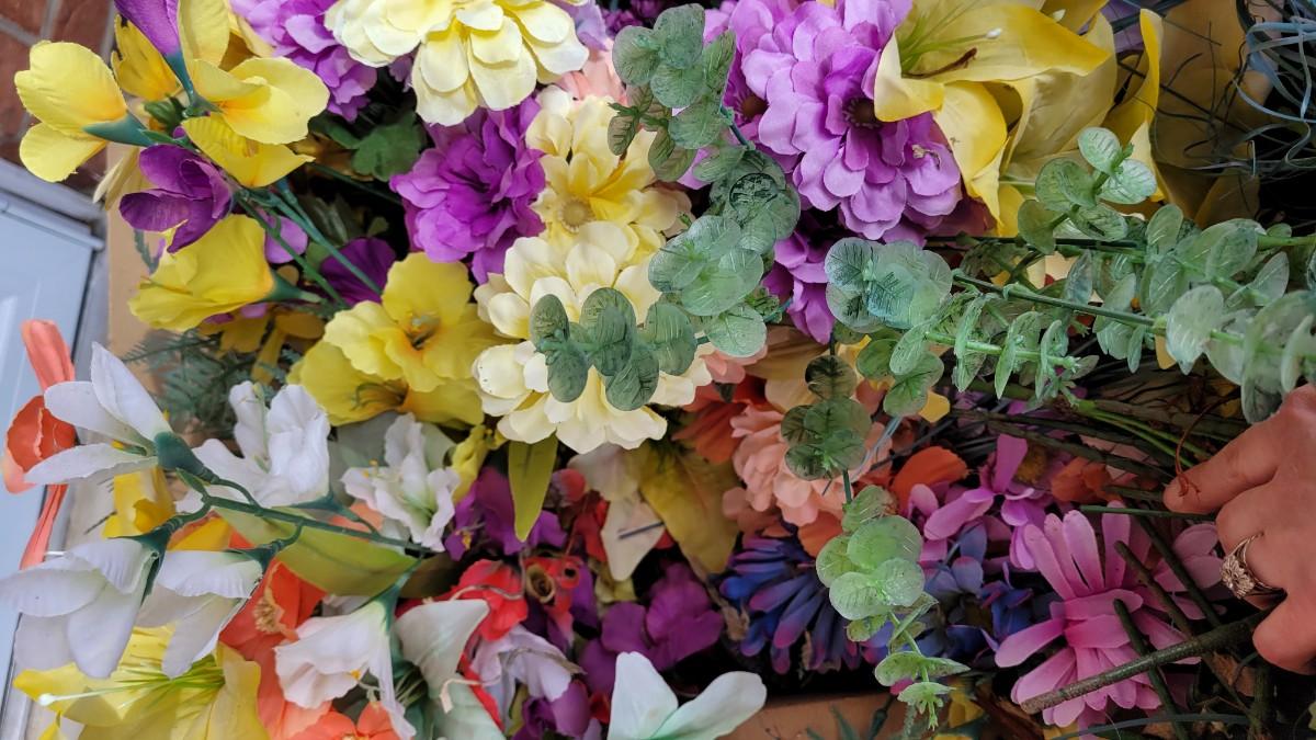 Lot 245: Used Outdoors Large Box of Faux Flowers