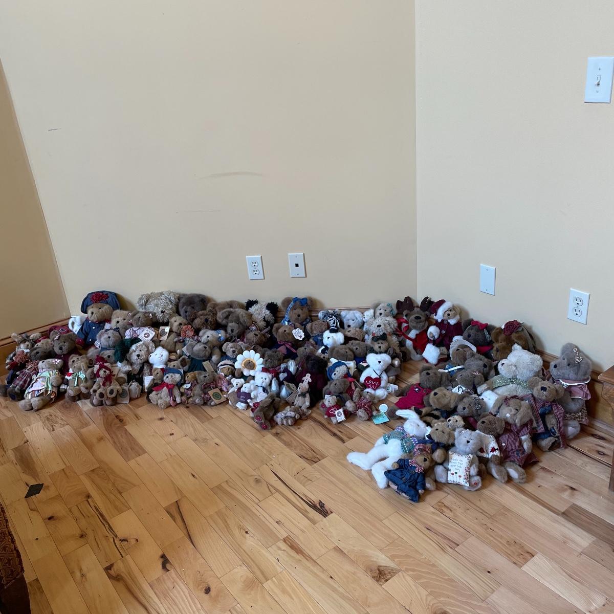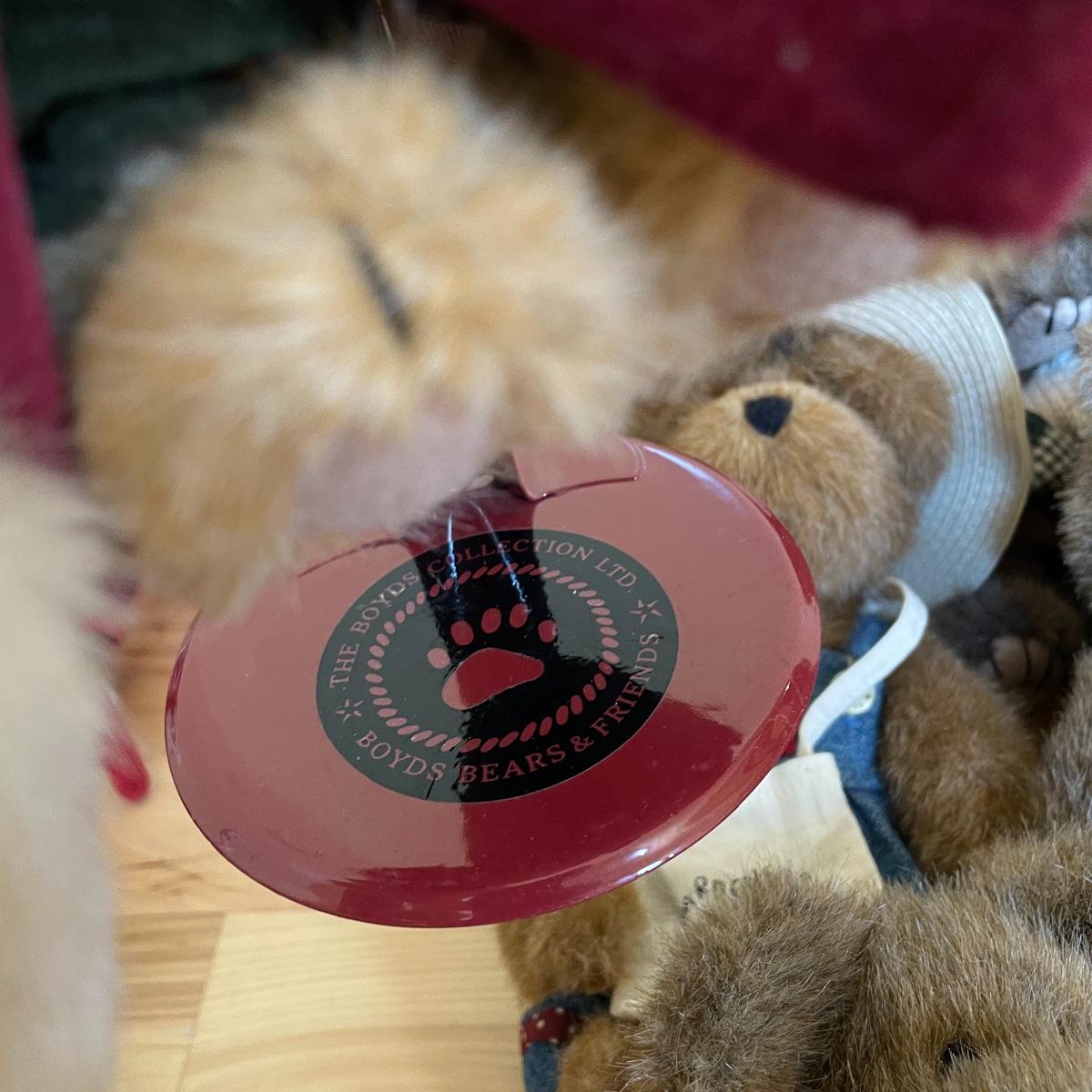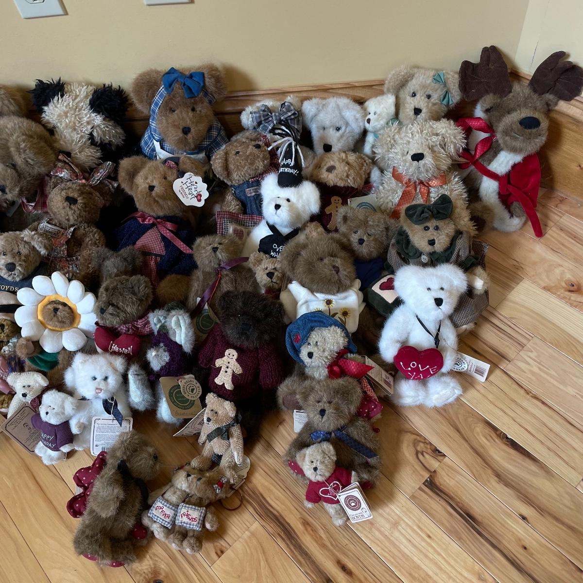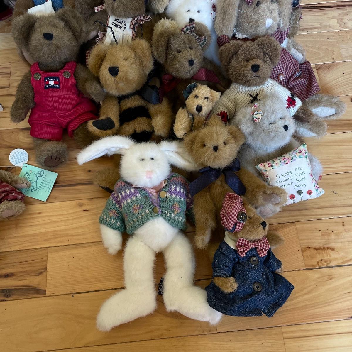A beary great find for the Boyd’s collectors and teddy bear enthusiasts. These fuzzy friends are ready to be gifted or displayed in your home! Lot includes about 65 bears with the seller’s tags (almost all the bears and bunnies have Boyd’s tags sewn to their bodies). There are also about twenty more bears and bunny without the paper sale tag; these are shown to the right of the Santa bear on a maroon metal Boyd’s stand. All bears range in between about 3.5” to the largest at 18”. See images. Find some super cute Boyd’s accessories in lot 249. Local pick up only.