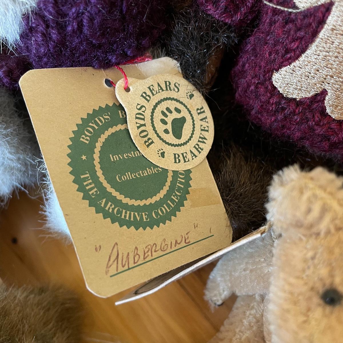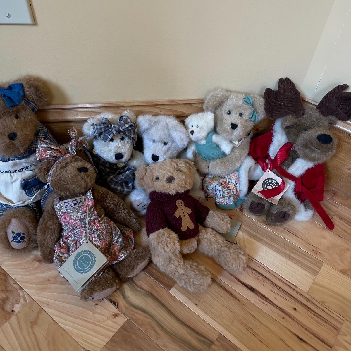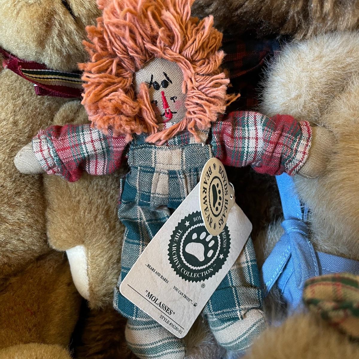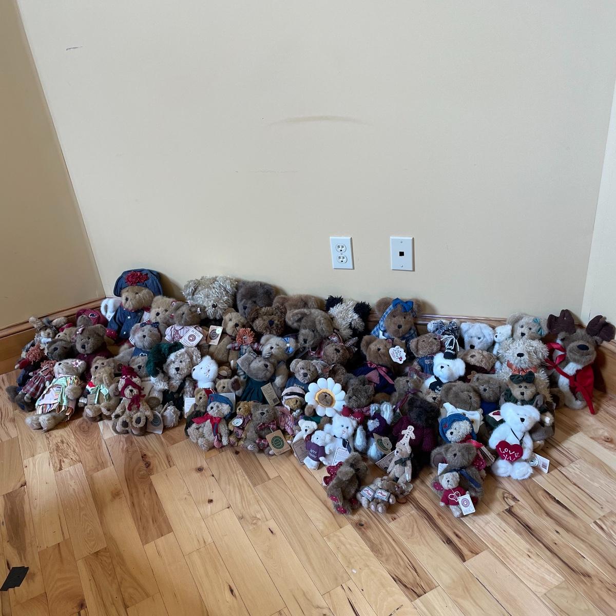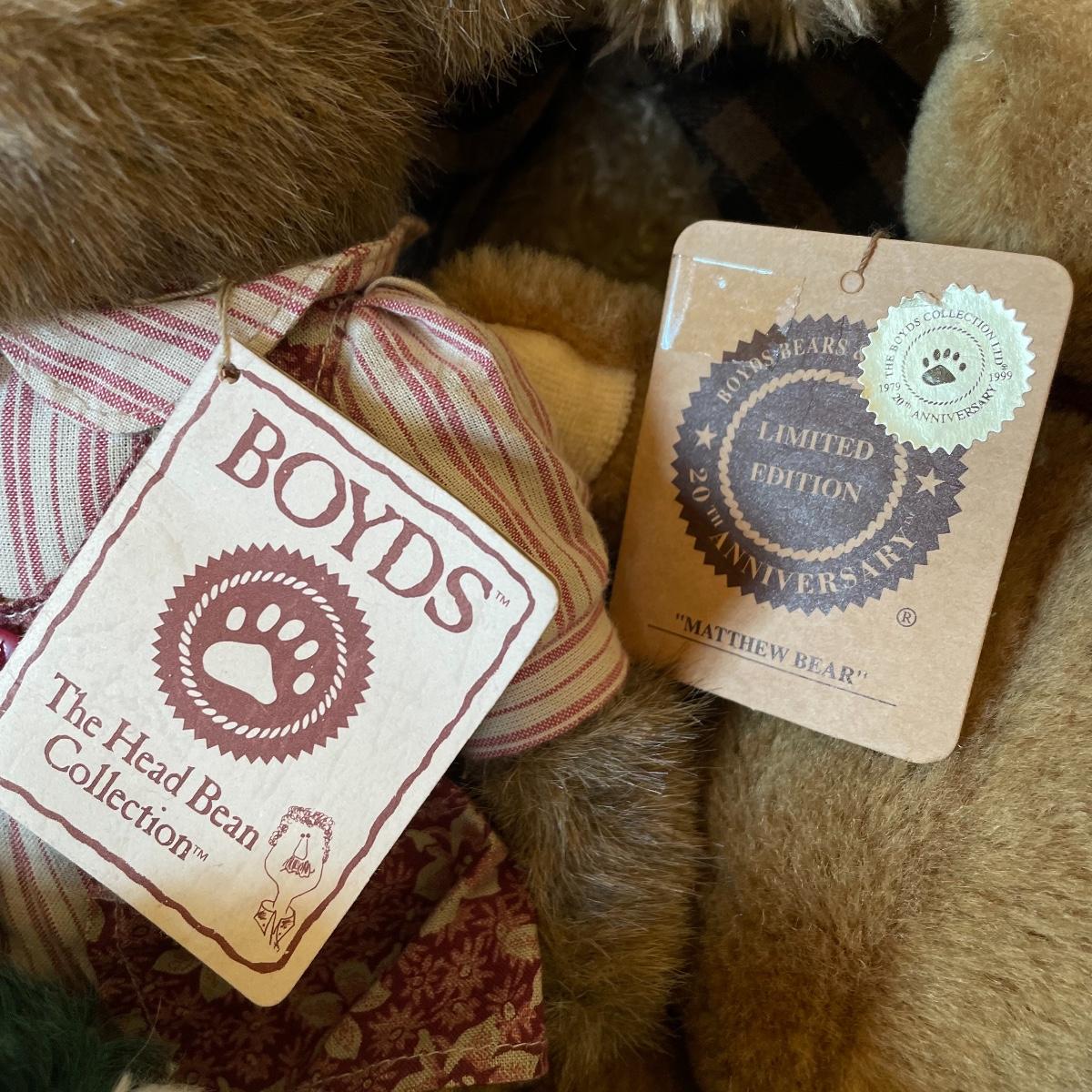 A beary great find for the Boyd’s collectors and teddy bear enthusiasts. These fuzzy friends are ready to be gifted or displayed in your home! Lot includes about 65 bears with the seller’s tags (almost all the bears and bunnies have Boyd’s tags sewn to their bodies). There are also about twenty more bears and bunny without the paper sale tag; these are shown to the right of the Santa bear on a maroon metal Boyd’s stand. All bears range in between about 3.5” to the largest at 18”. See images. Find some super cute Boyd’s accessories in lot 249. Local pick up only.