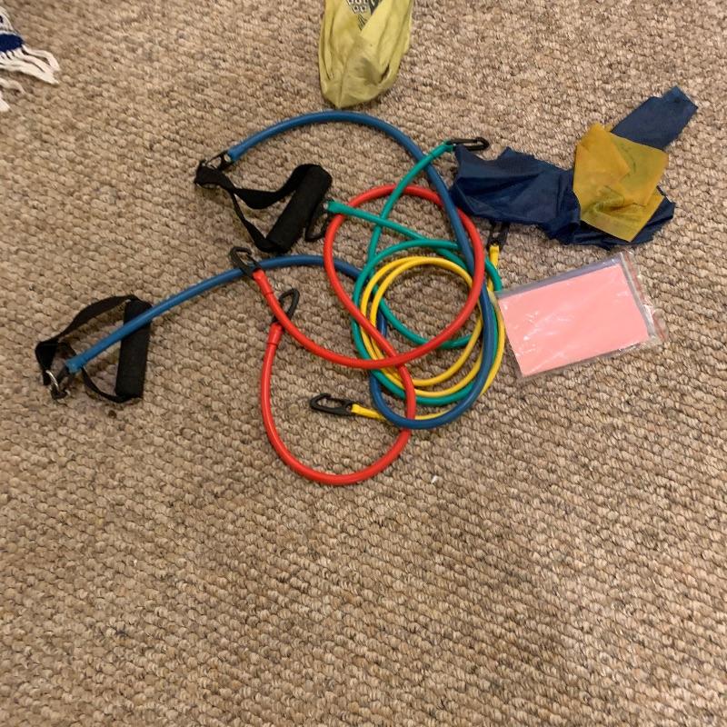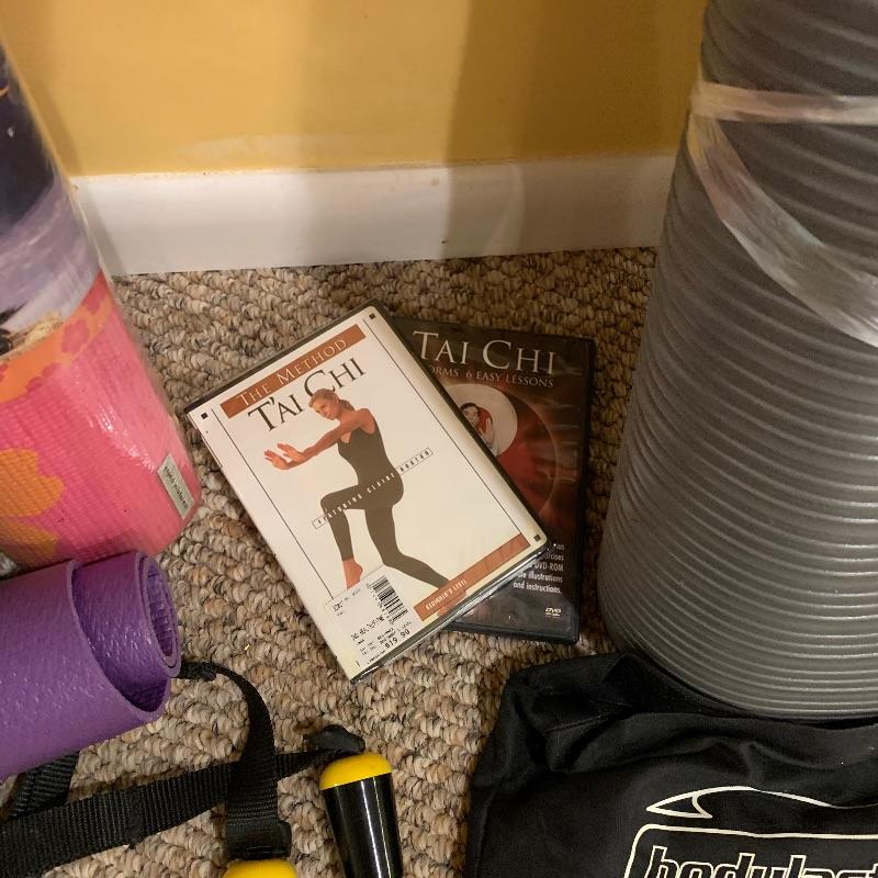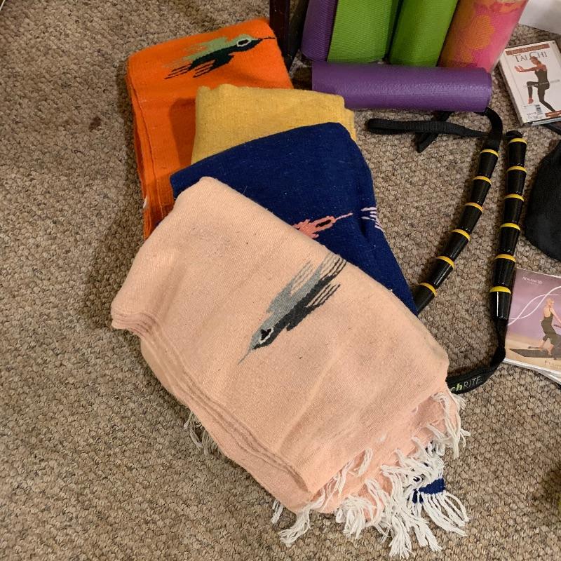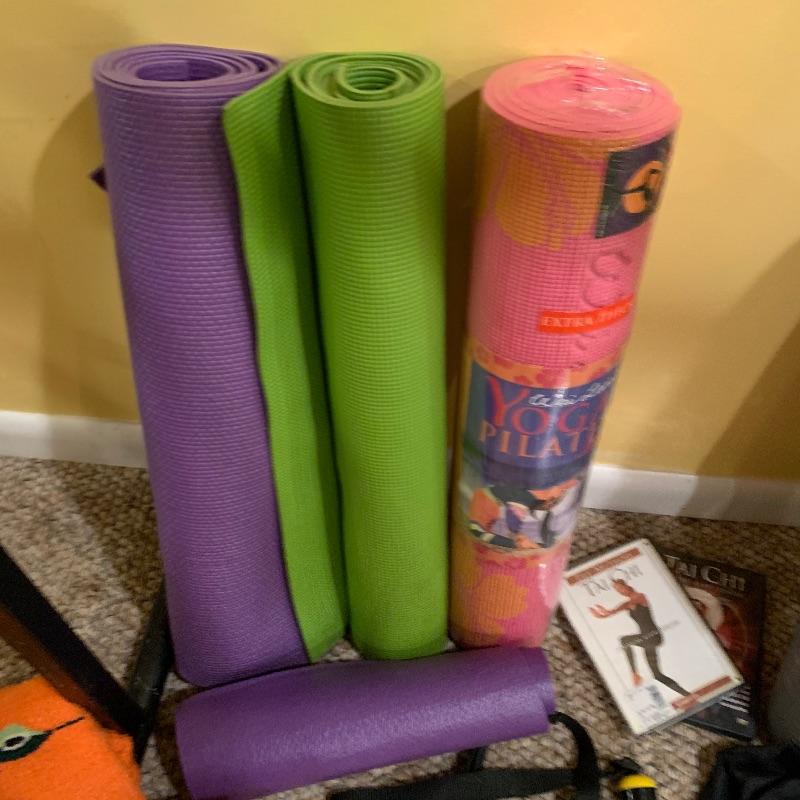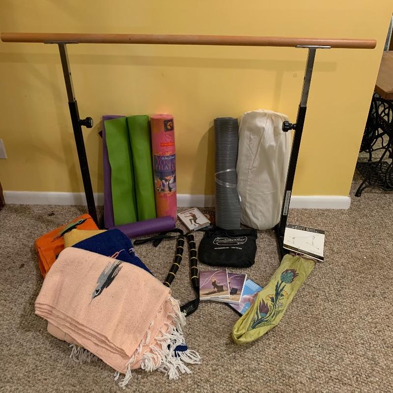 Along with the Ballet bar that measures 60” x24.5” and adjustable height, there are four Mexican blankets, three yoga mats, a bolster, five DVD’s and stretch bands to name a few. This is a great lot for the yogi, Pilates, and Tai chi folks. Local pick up only.