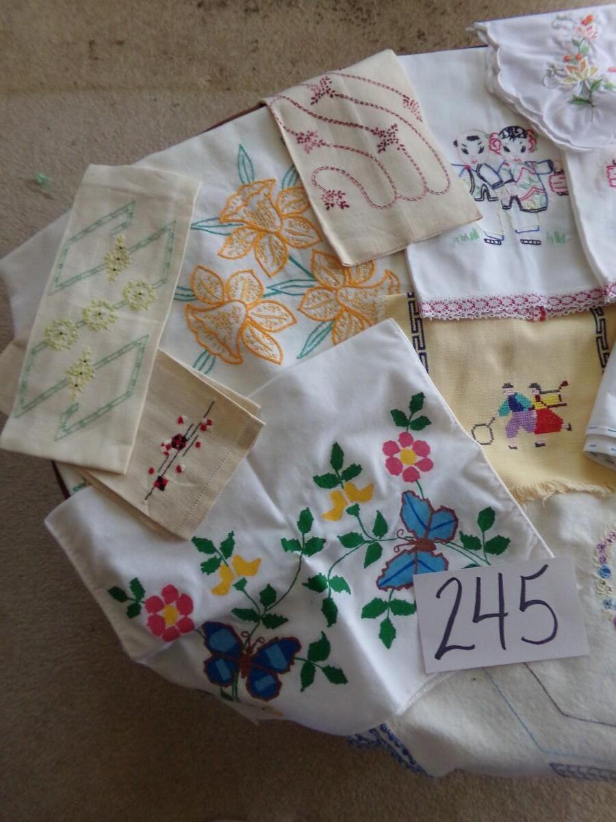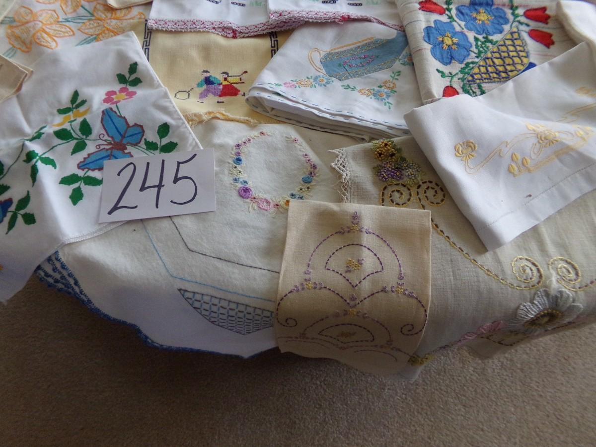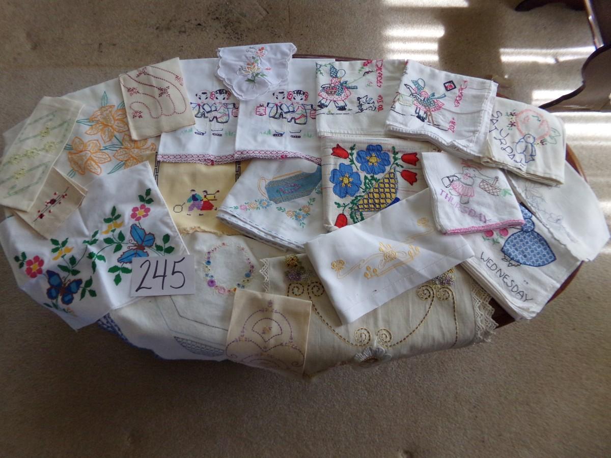 LOT 245 HAND EMBROIDERED/DECORATED TEA TOWELS