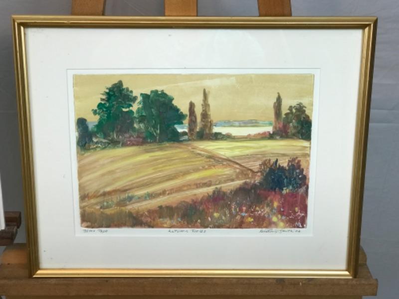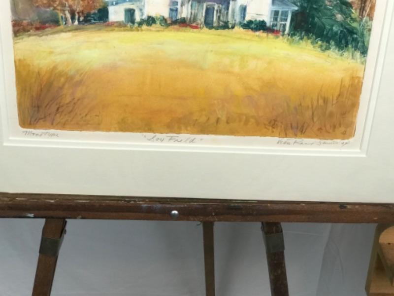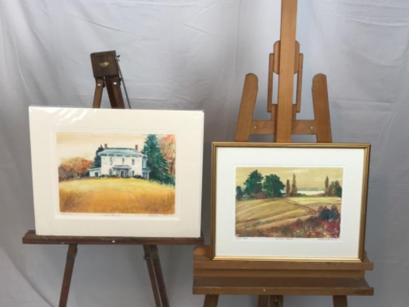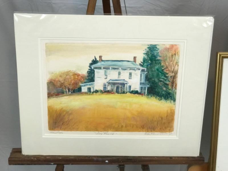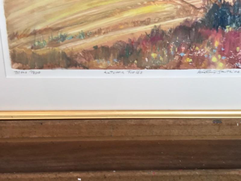 Pair of Jean Ranney Smith signed mono type art “Autumn Fields” is framed and measures 19”x15” and “Soy Field” is matted and measures 20”x16”