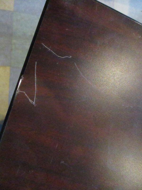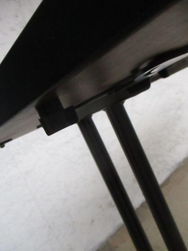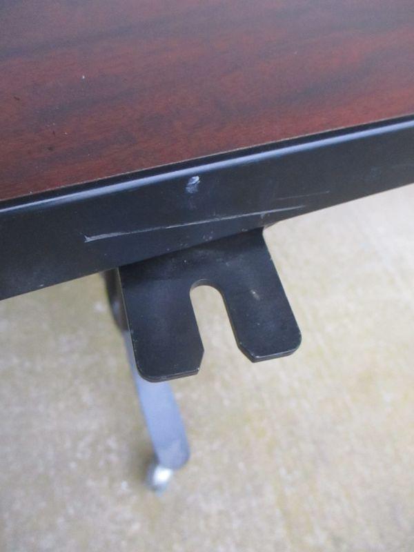 There are hooks on each table that will allow you to connect both tables together. There is a scratch on this desk