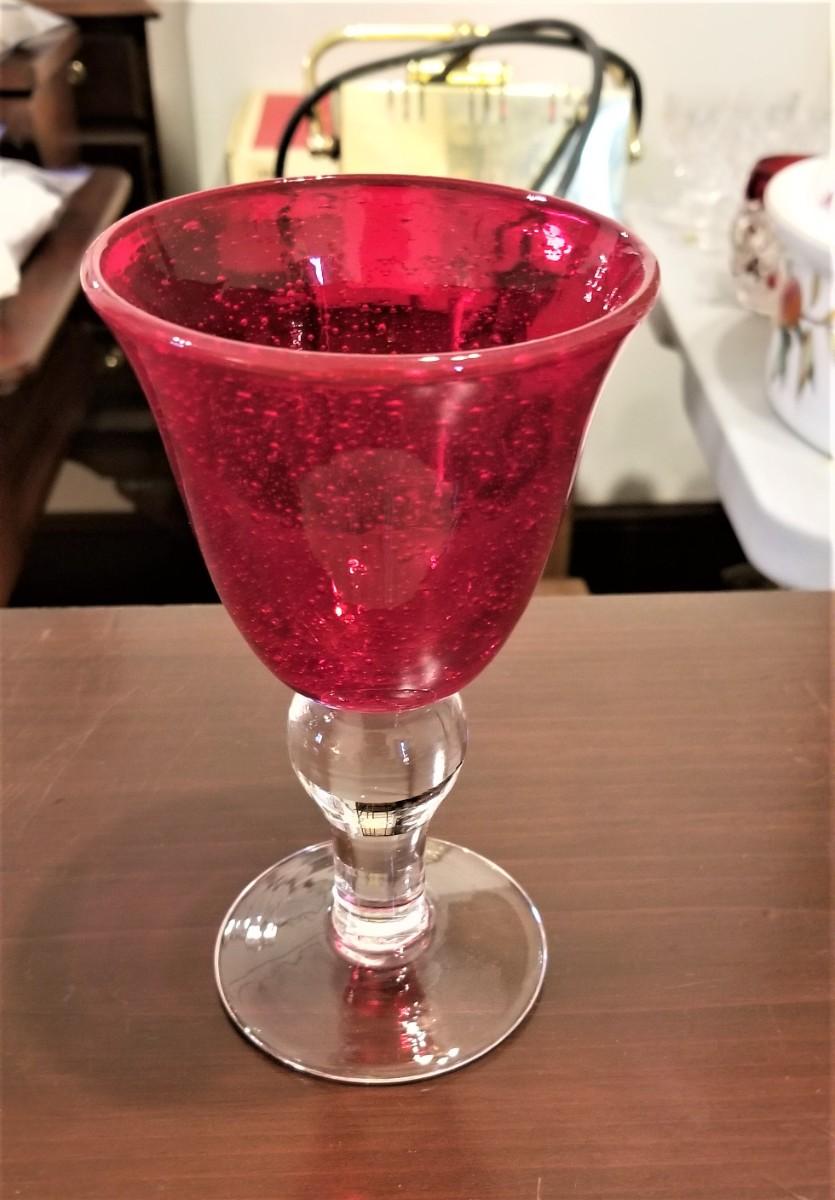 Lot #245 Set of four Hand-blown Ruby/Clear goblets