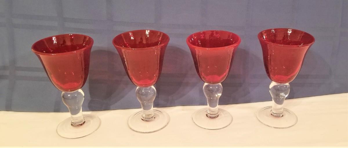 Lot #245   Set of four Hand-blown Ruby/Clear goblets