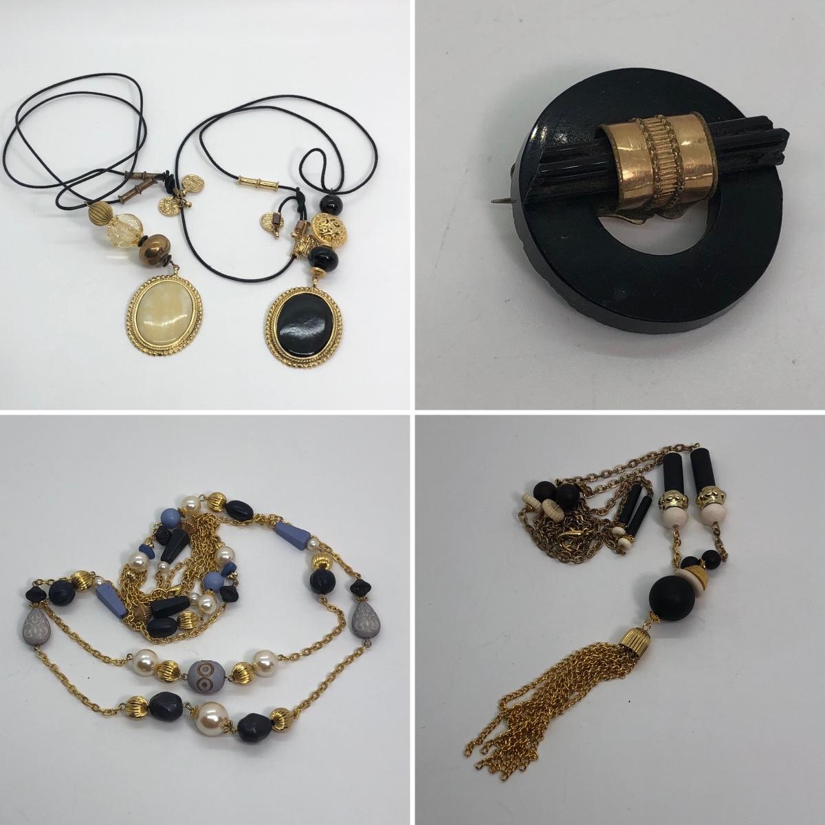 LOT 245M: Black & Goldtone Necklaces & Pin