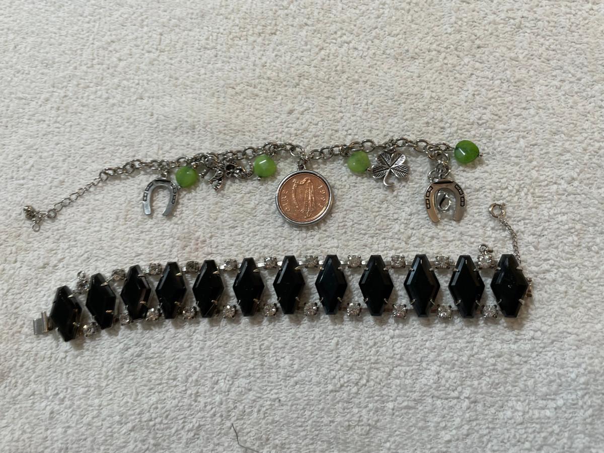 Irish Charm bracelet & 50s Rhinestone bracelet.