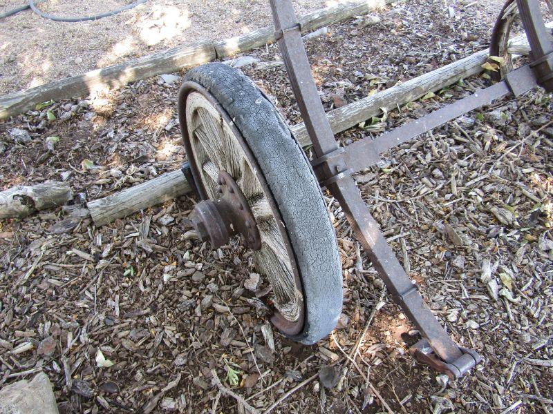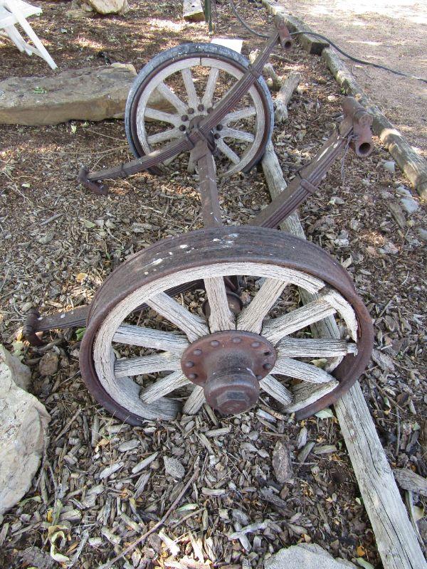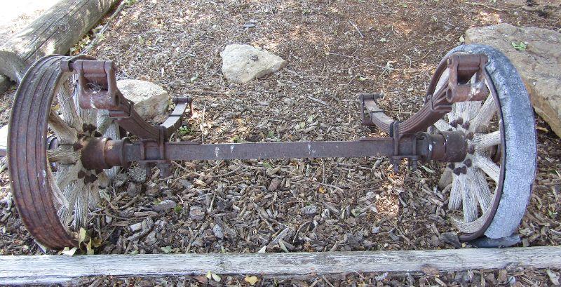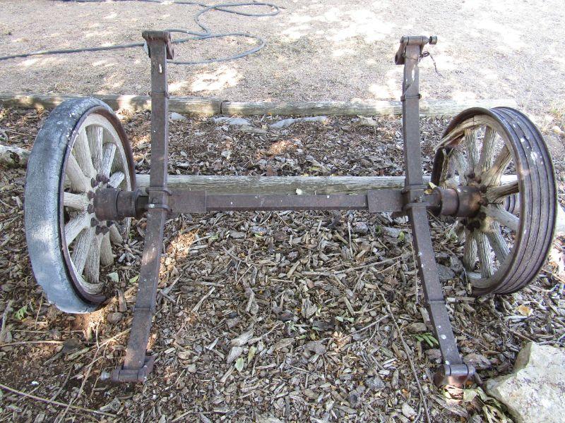 Y-4  ANTIQUE WOODEN RIMMED WHEELS AND AXLE