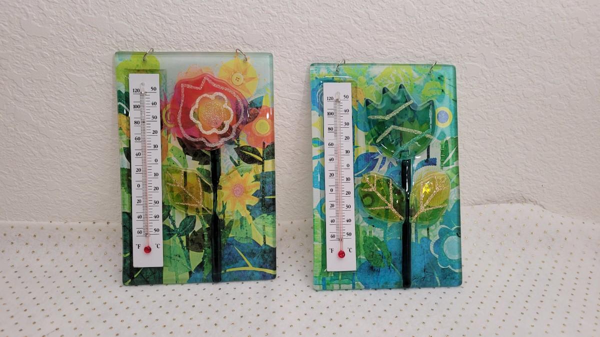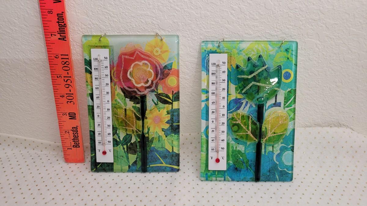 Lot 246: (2) New Stained Glass Thermometer Home Deco