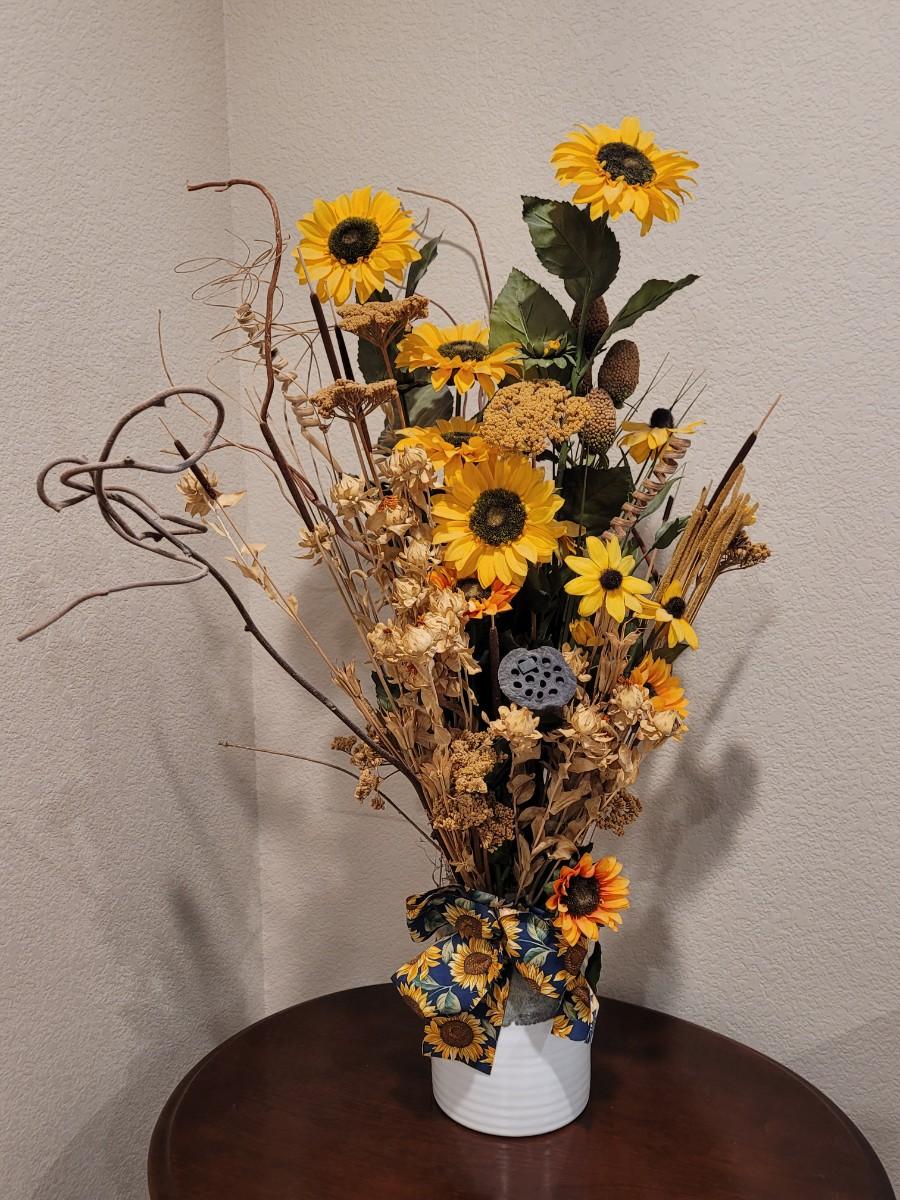 Lot 246: Large Sunflower Arrangement in Ceramic Container