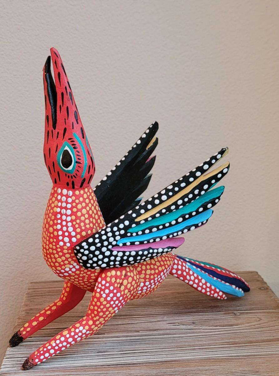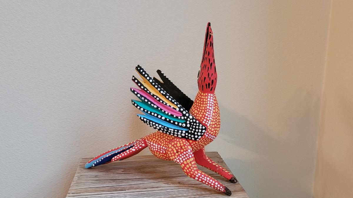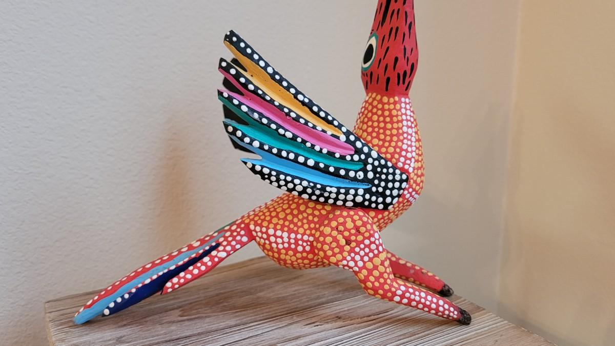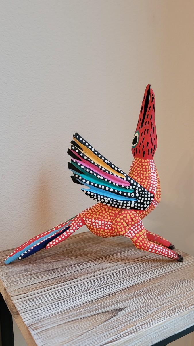Lot 246: Handpainted Mexican Folk Art Alejibre Wood Bird