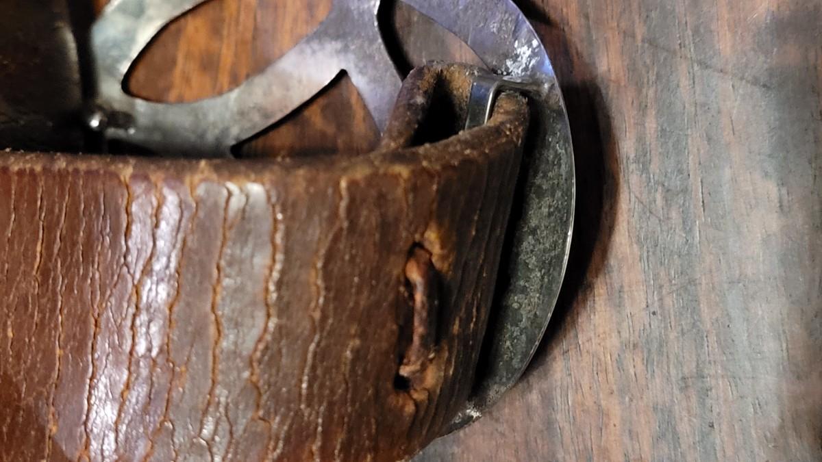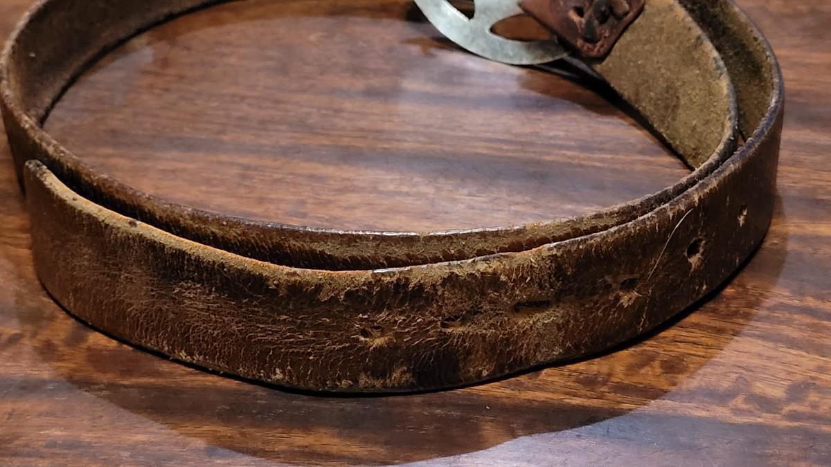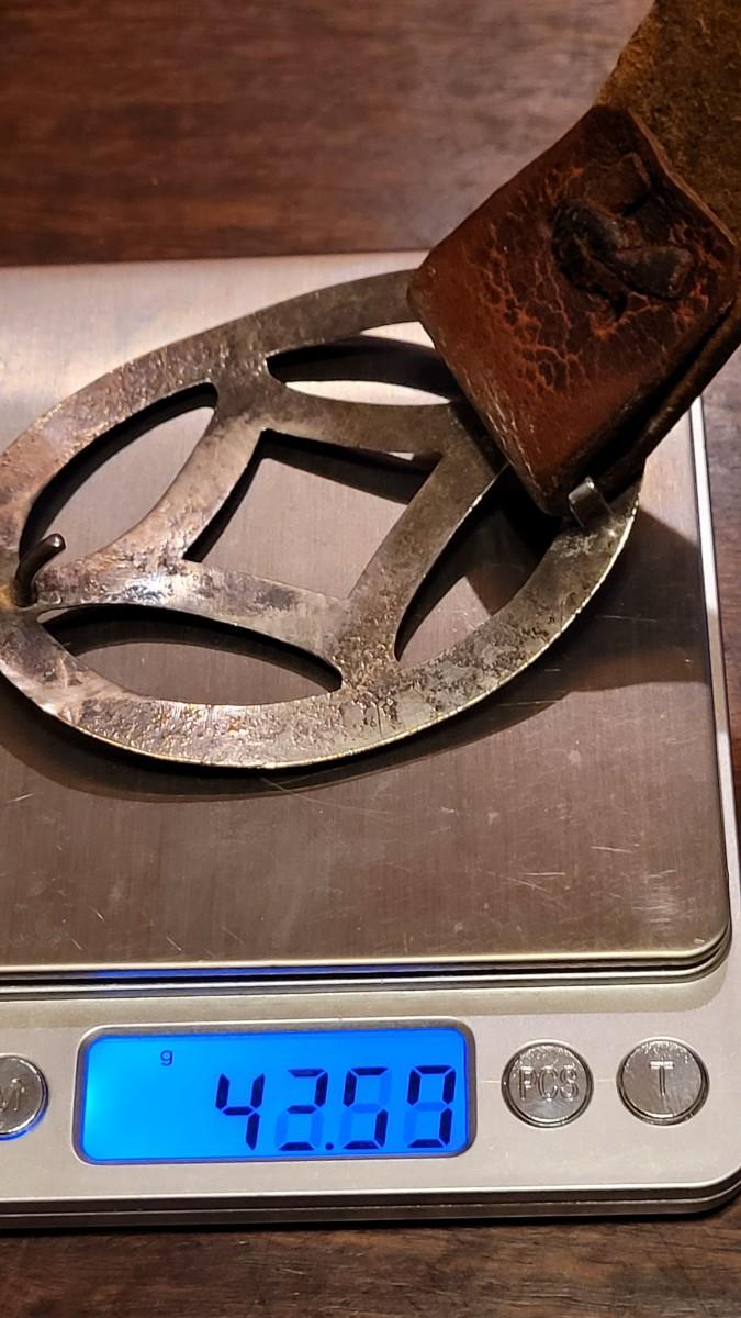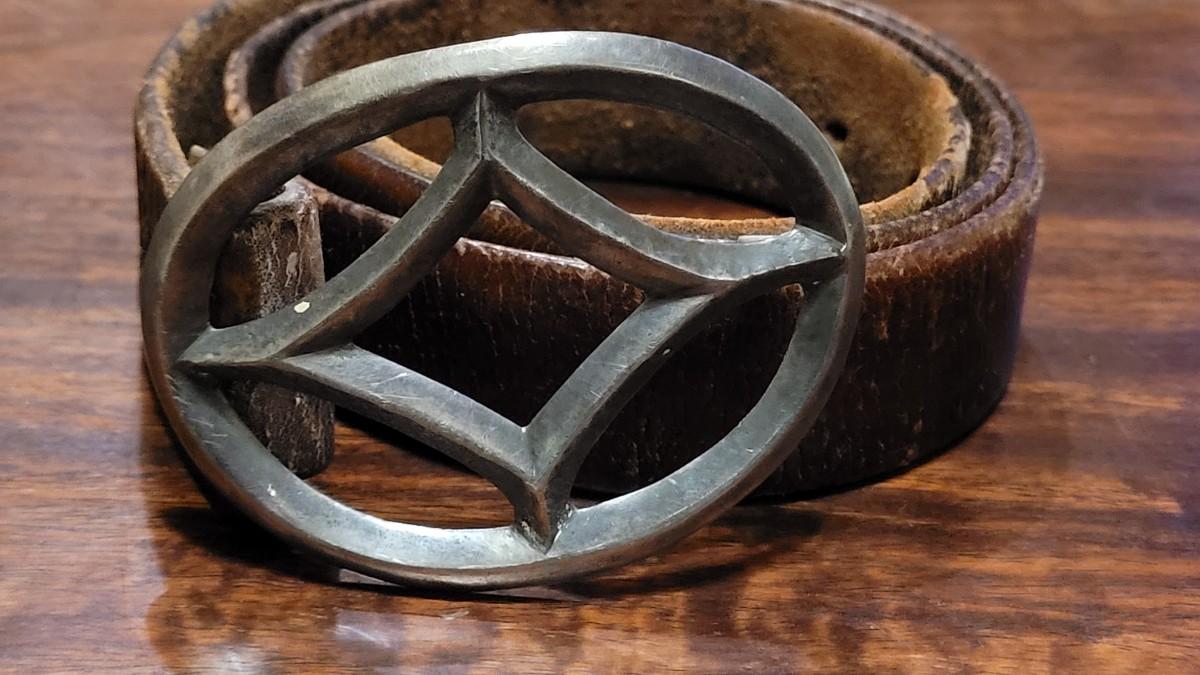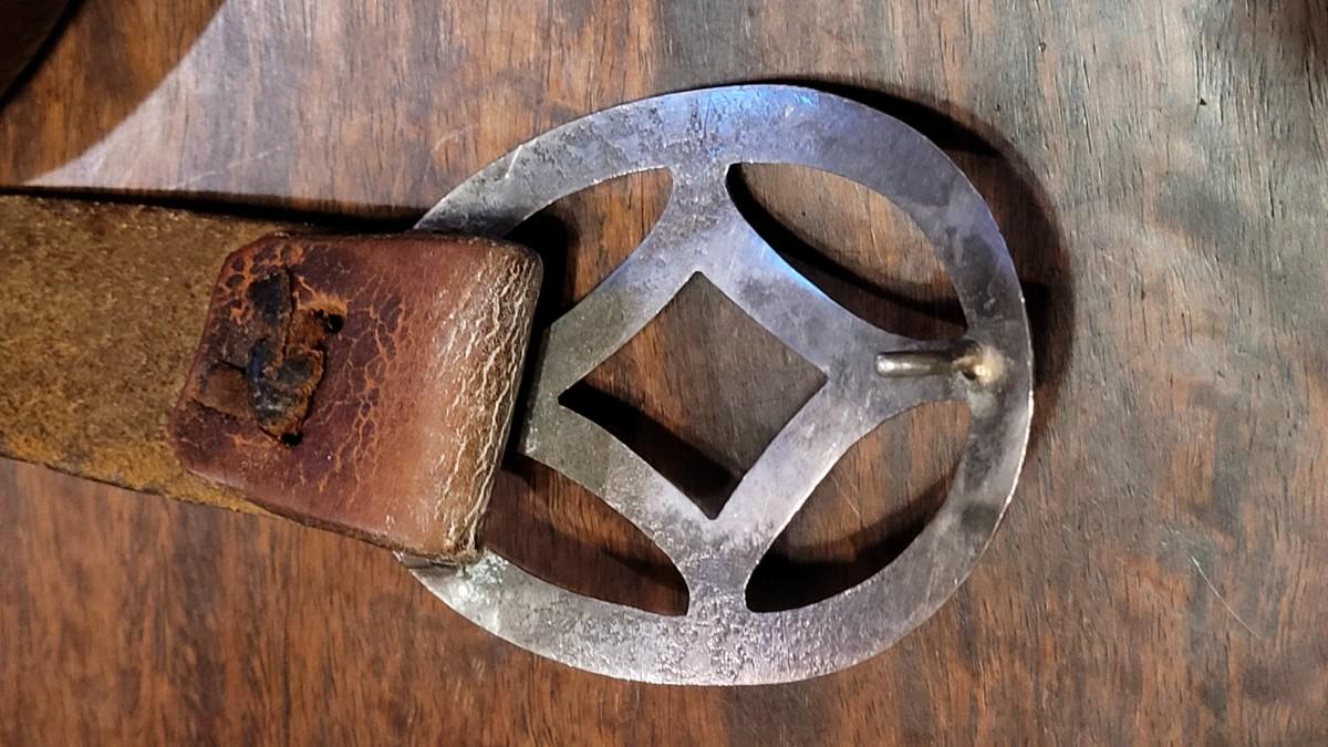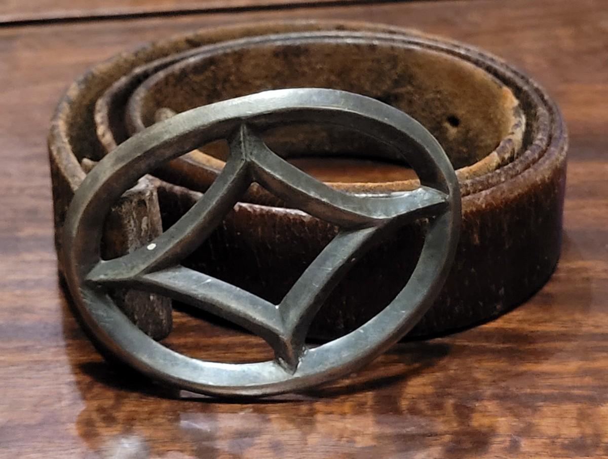 Lot 246: Old Pawn Navajo Sterling Belt Buckle and Leather Belt