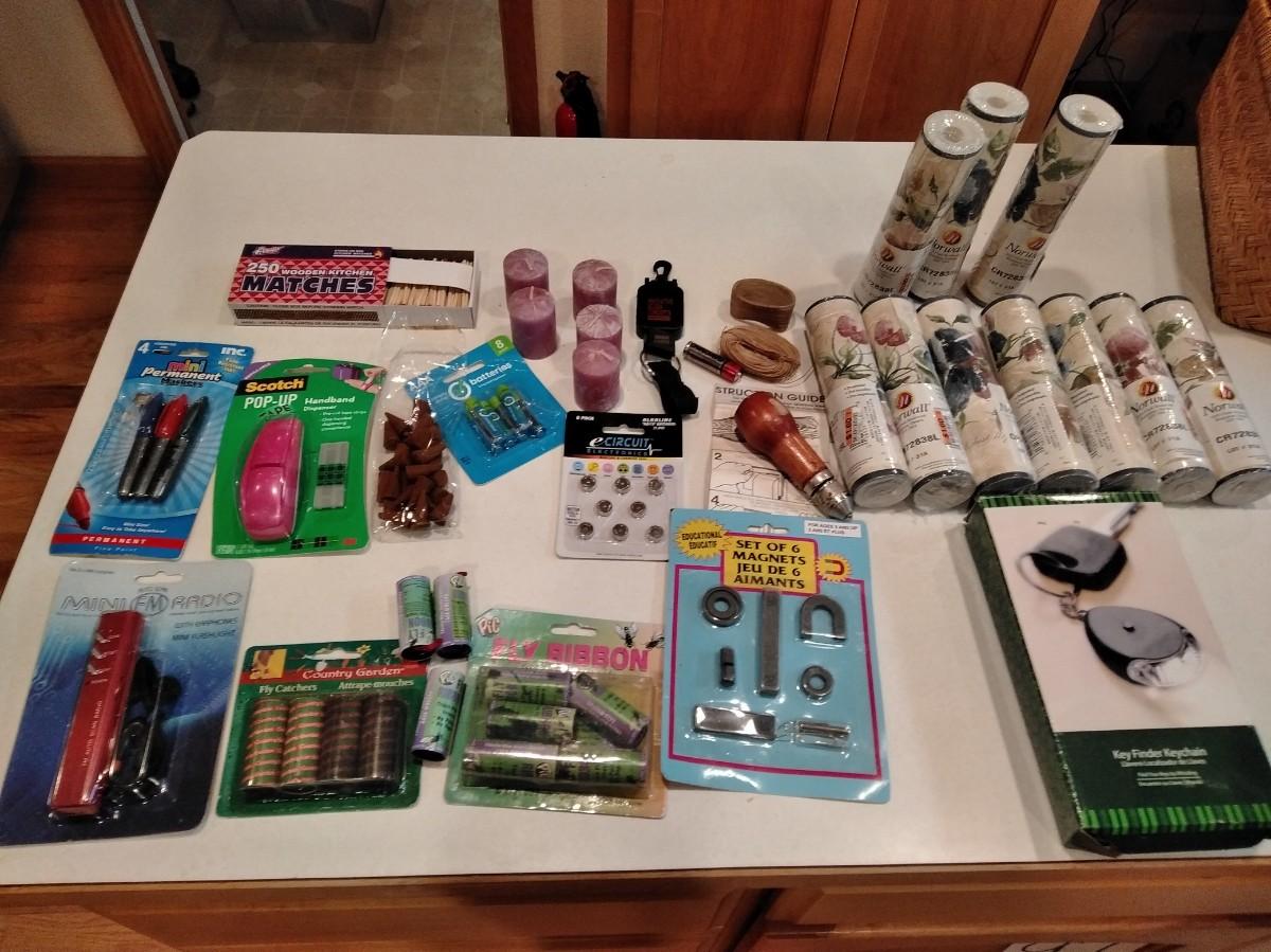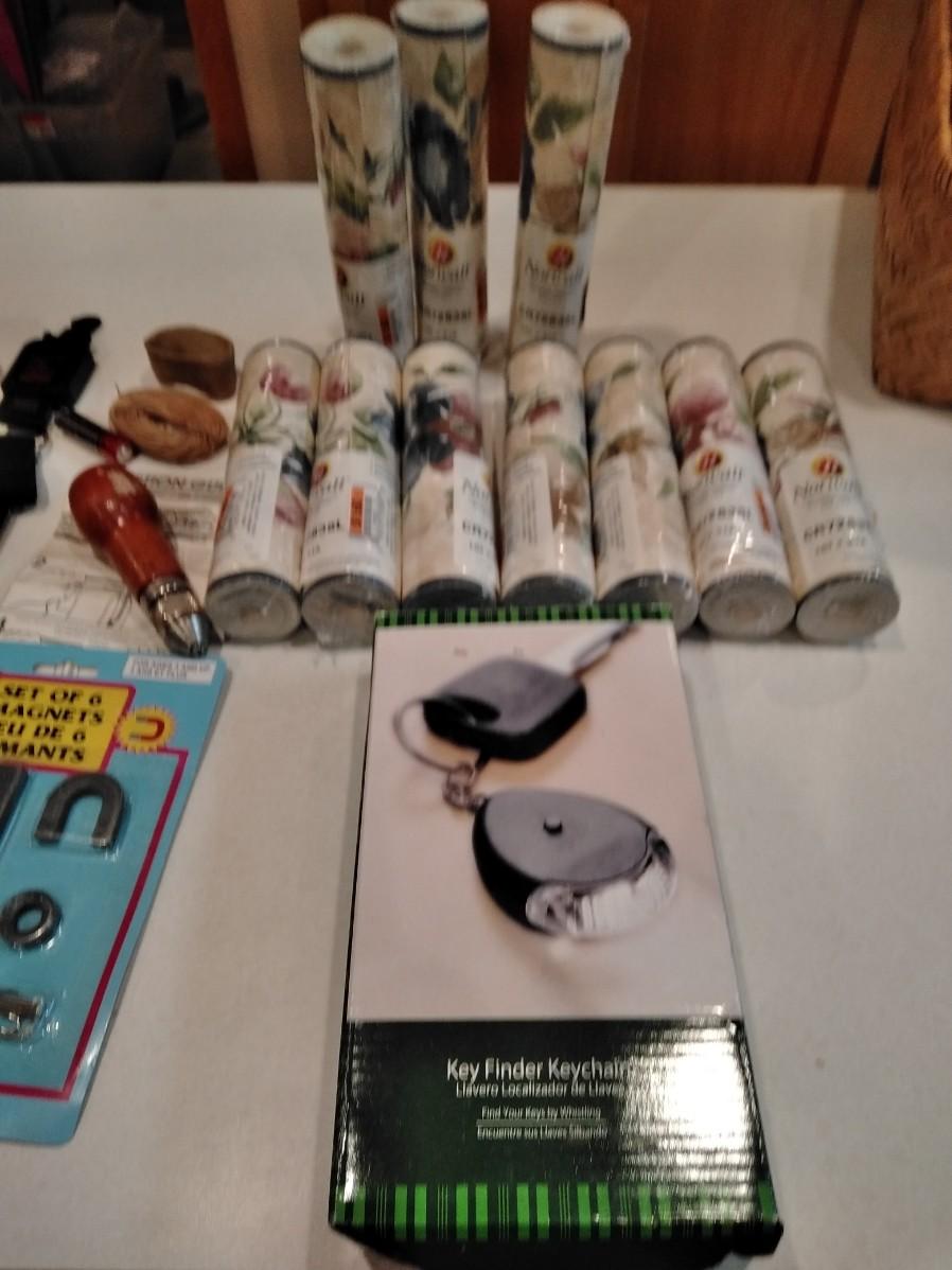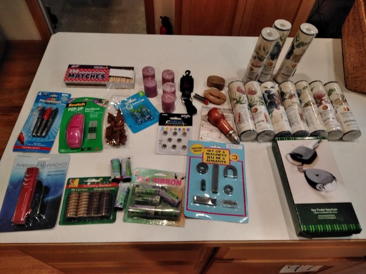 HOUSEHOLD HARDWARE / HOME IMPROVEMENT INCLUDING WALL-PAPER BORDER, MAGNET SET, FLY RIBBON, MATCHES, AND LOTS MORE